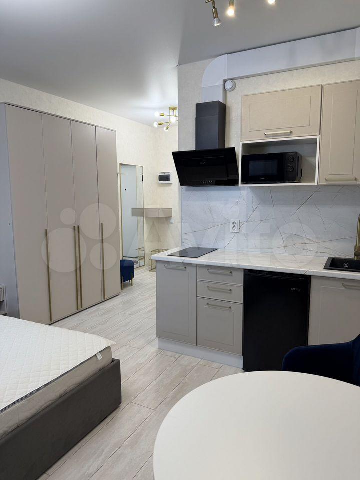 Квартира расположена на 30 этаже, откуда открывается прекрасный вид из окон. В студии предусмотрен совмещенный санузел.