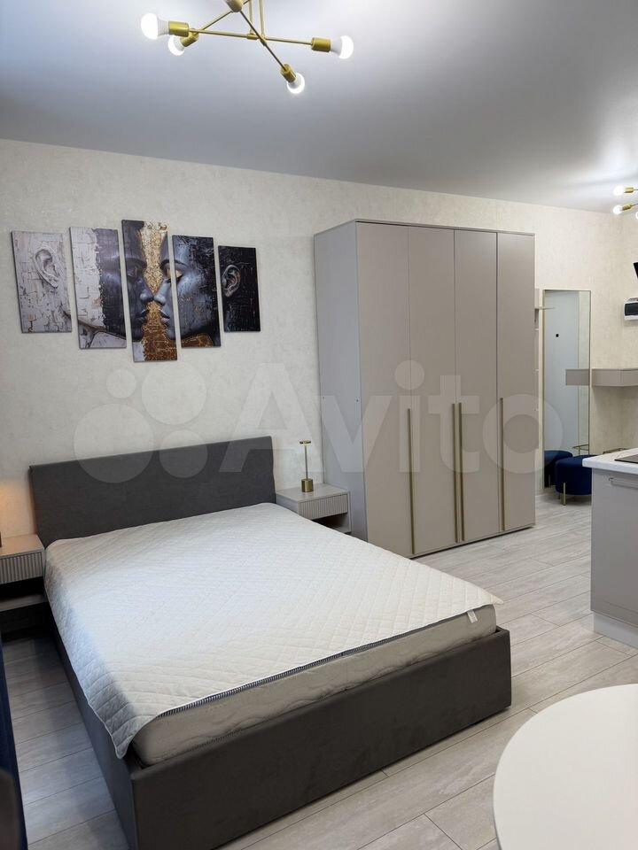 · Комната (базово): Кровать (матрас новый, 2023 г.), платяной шкаф (купе, система «Компакт»), комод (3 ящика), прикроватная тумба. Вопросы по составу мебели решаем до заселения.