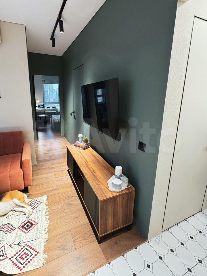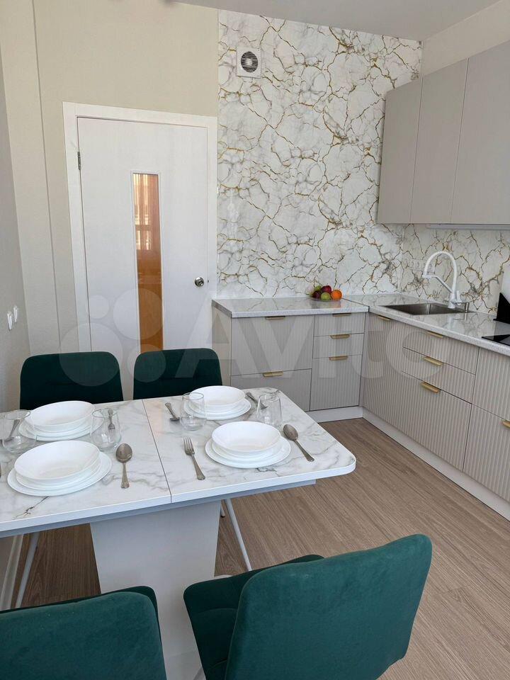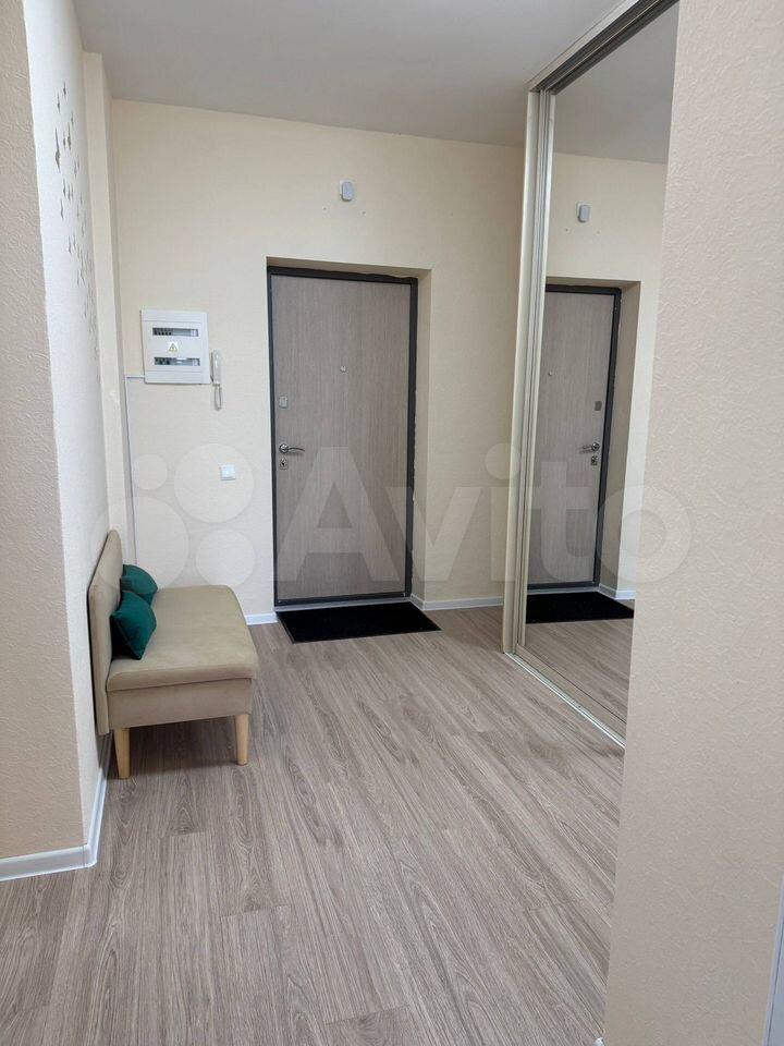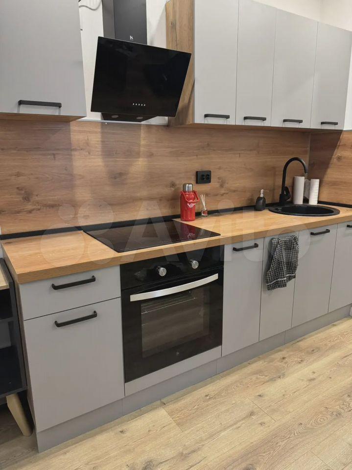 В квартире сделан косметический ремонт. Присутствует вся необходимая мебель и посуда: раскладной диван, встроенный шкаф-купе, большая прихожая и гостиная с телевизором, кухонный гарнитур и техника: вместительный двухкамерный холодильник, стиральная машина, электрическая плита с духовкой, телевизор, чайник.