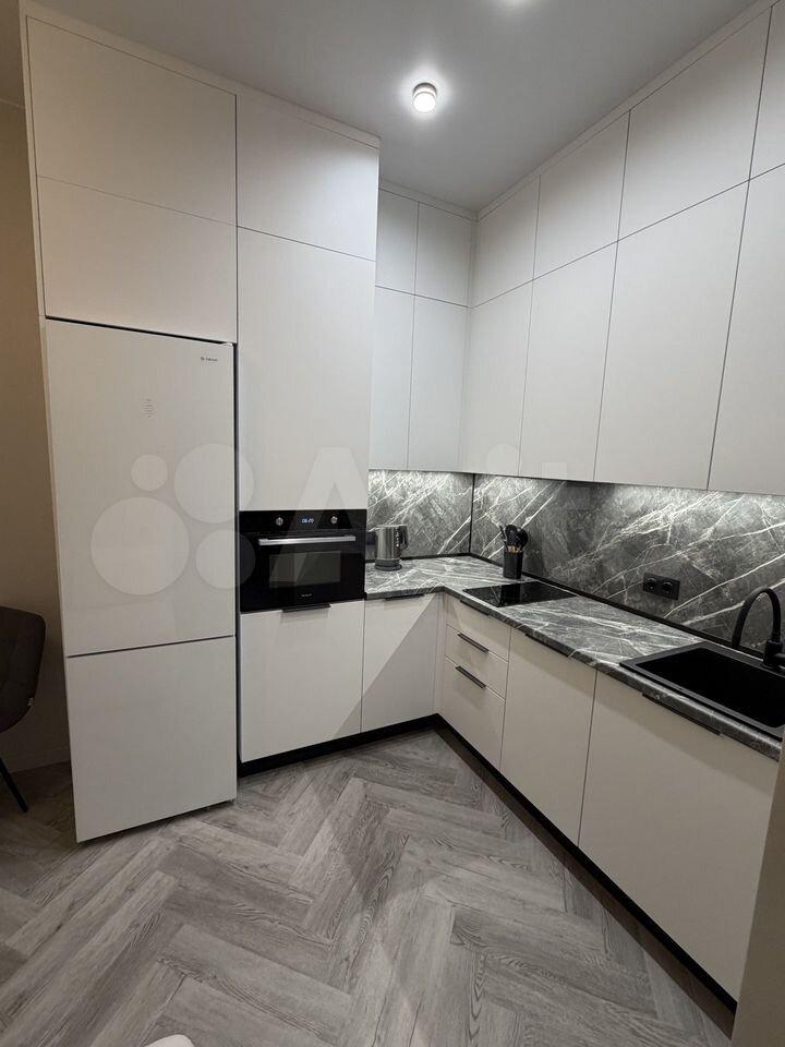 В квартире выполнен дизайнерский ремонт, теплые полы на кухне, в ванной и в коридоре, есть вся мебель, Кухонный гарнитур, двуспальная кровать, раскладной диван,стол, барная стойка, стулья, комод и обувница в прихожей, также большая гардеробная с выкатной зеркальной дверью.