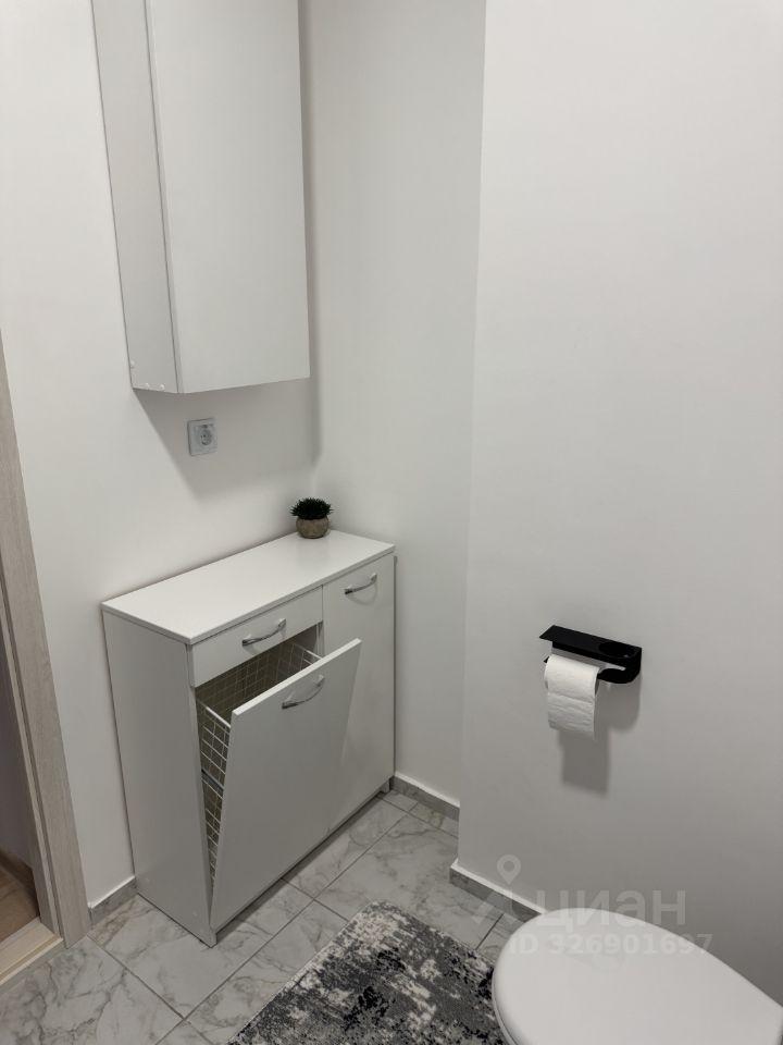 В ванной душевая кабина, шкафы для хранения.