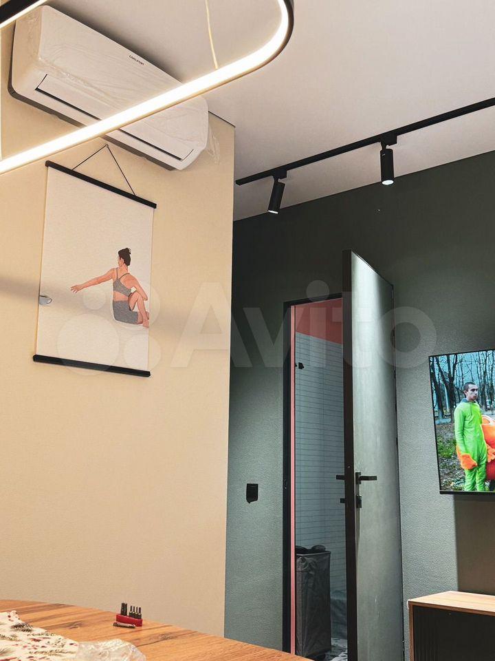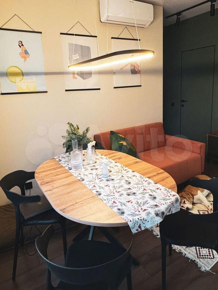 диван раскладной (2 спальных места), раскалывающийся обеденный стол (120 см), обеденные стулья, комод под ТВ и смарт телевизор. кондиционер
