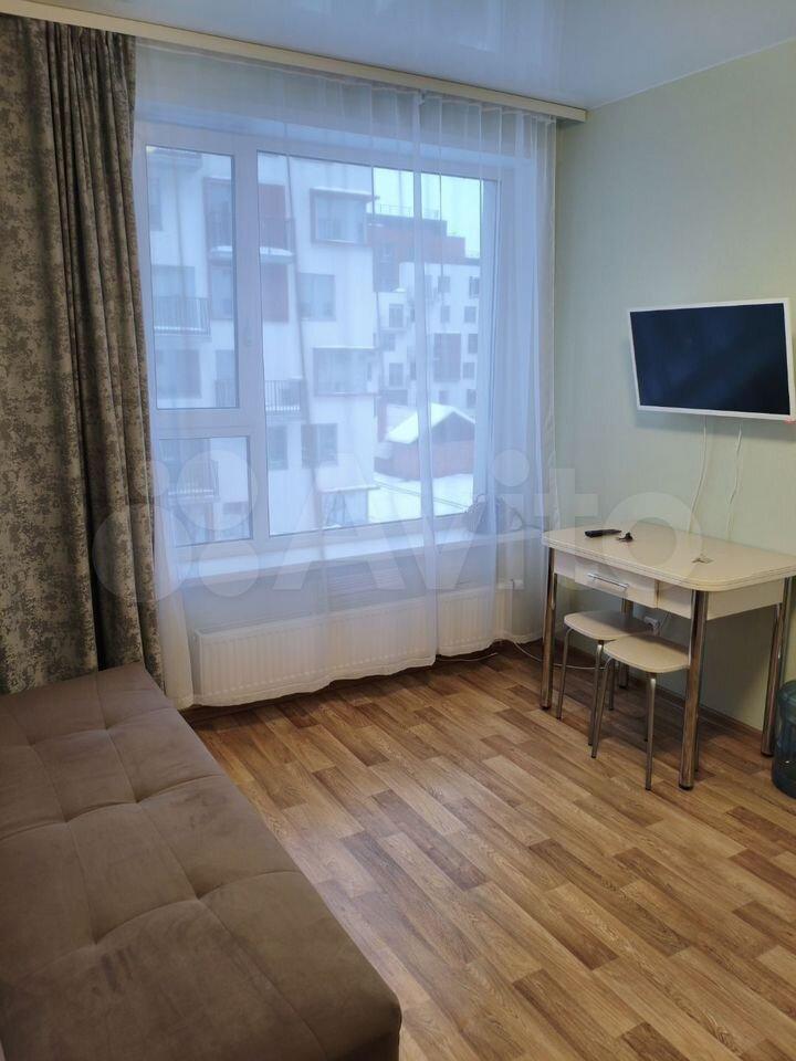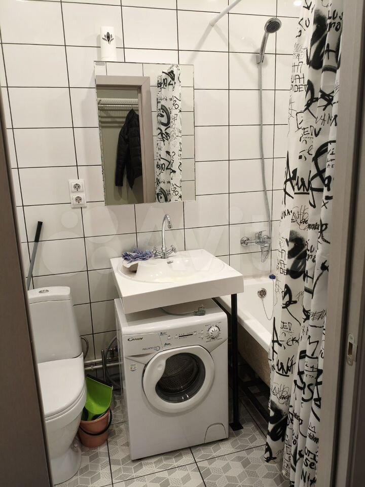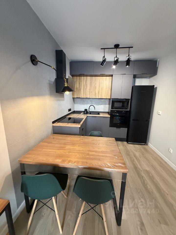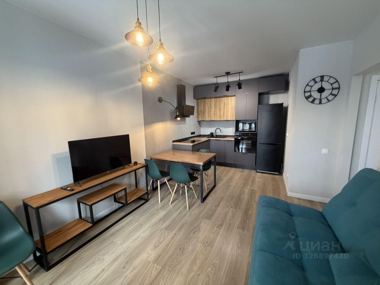 Квартира полностью готова для комфортного проживания. Просторная кухня площадью 17 кв. м оснащена всей необходимой мебелью и техникой, включая холодильник и телевизор. В комнате также есть вся необходимая мебель. В ванной комнате установлена ванна и стиральная машина. Высота потолков составляет 2.3 метра, что создает ощущение простора.