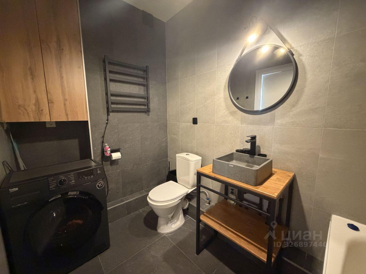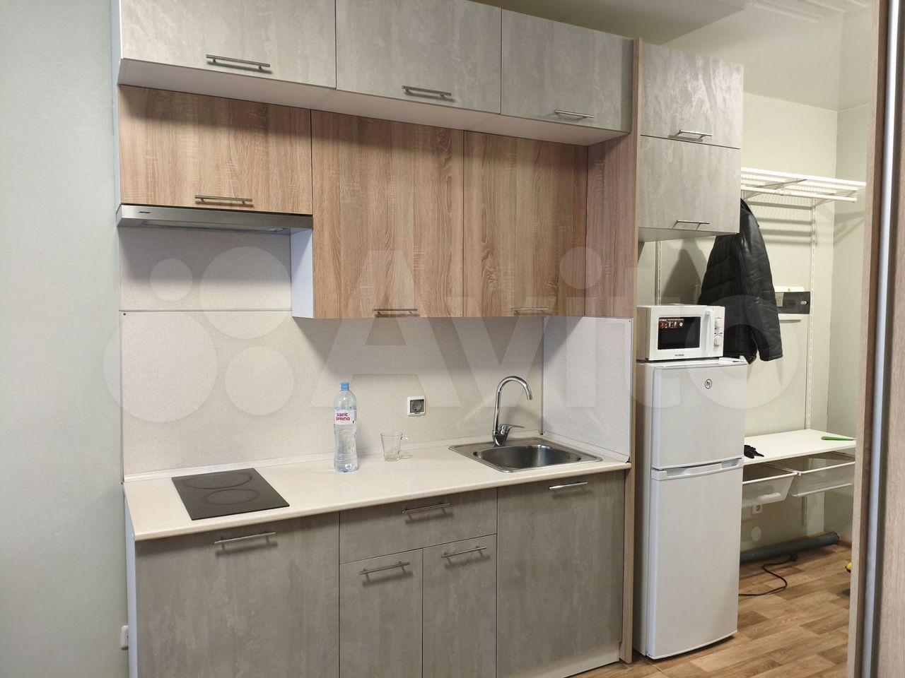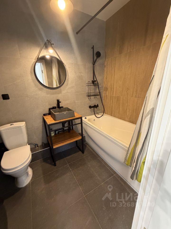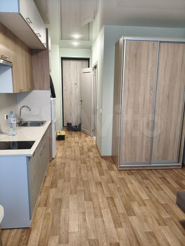 Квартира полностью готова для комфортного проживания. Просторная кухня площадью 17 кв. м оснащена всей необходимой мебелью и техникой, включая холодильник и телевизор. В комнате также есть вся необходимая мебель. В ванной комнате установлена ванна и стиральная машина. Высота потолков составляет 2.3 метра, что создает ощущение простора.