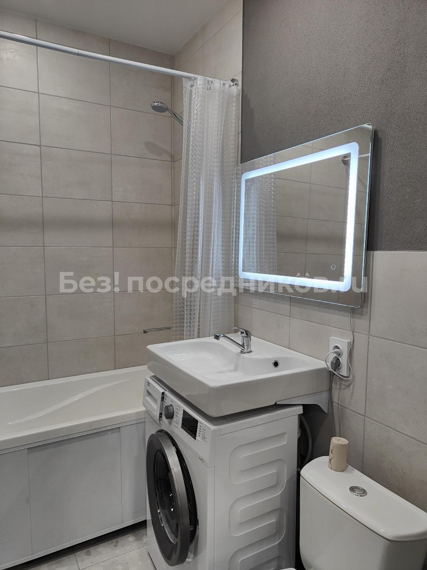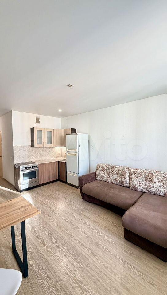 В квартире сделан современный ремонт, есть вся необходимая мебель и техника для комфортного проживания. На кухне вас ждёт полный комплект мебели и бытовой техники, включая холодильник и стиральную машину. В комнате также есть всё, что нужно для отдыха и работы. Санузел совмещённый, удобный и функциональный.
