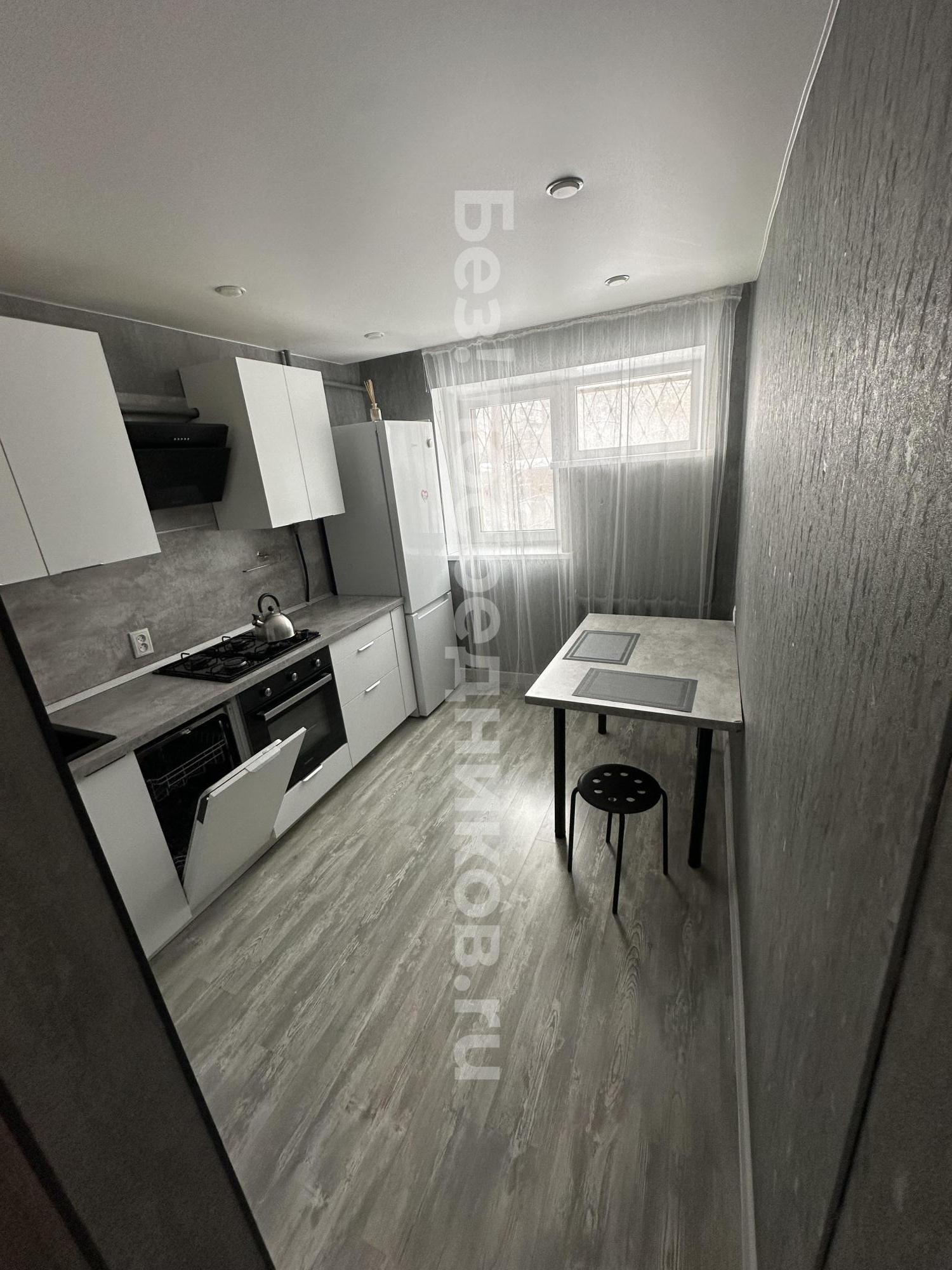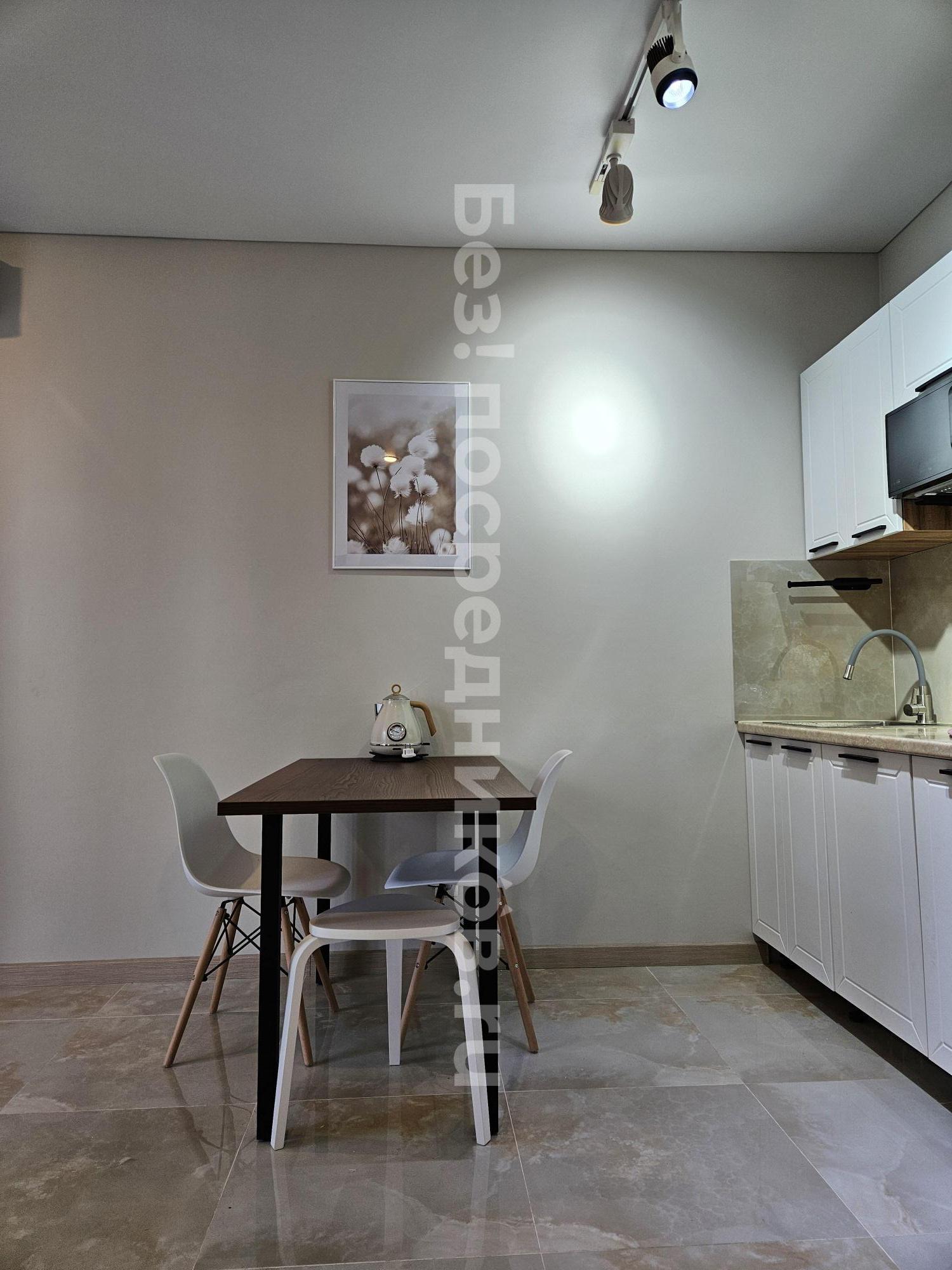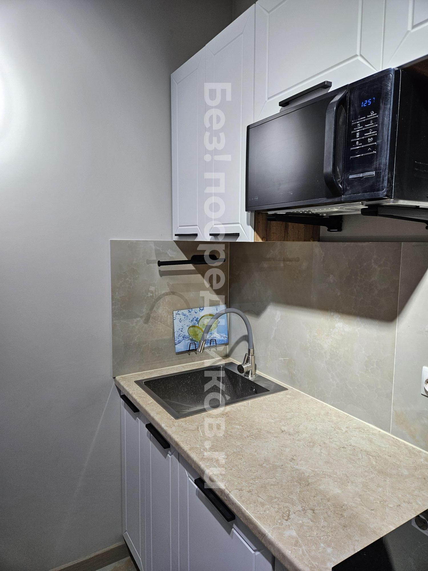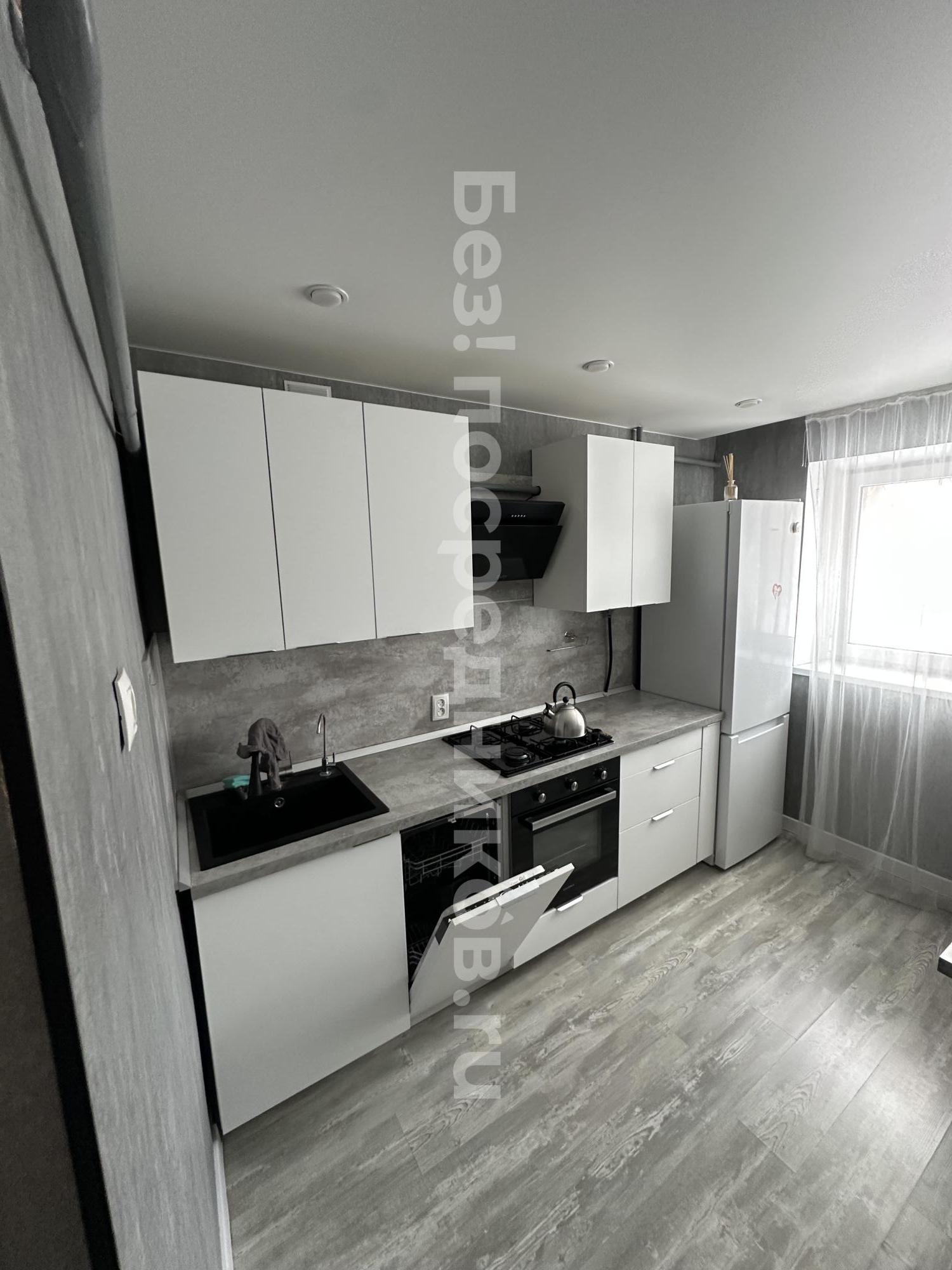 В квартире выполнен косметический ремонт, который придаёт ей свежий и аккуратный вид. Кухня оснащена необходимой бытовой техникой, включая холодильник и микроволновую печь. В наличии посудомоечная машина и современная вытяжка, духовой шкаф, чайник, варочная панель, трехступенчатая система очистки воды и телевизор со смарт-приставкой. Большое количество шкафов для хранения, необходимый набор посуды и столовых приборов. Так же имеется кухонный стол (раскладной), стулья и диван (двуспальный).