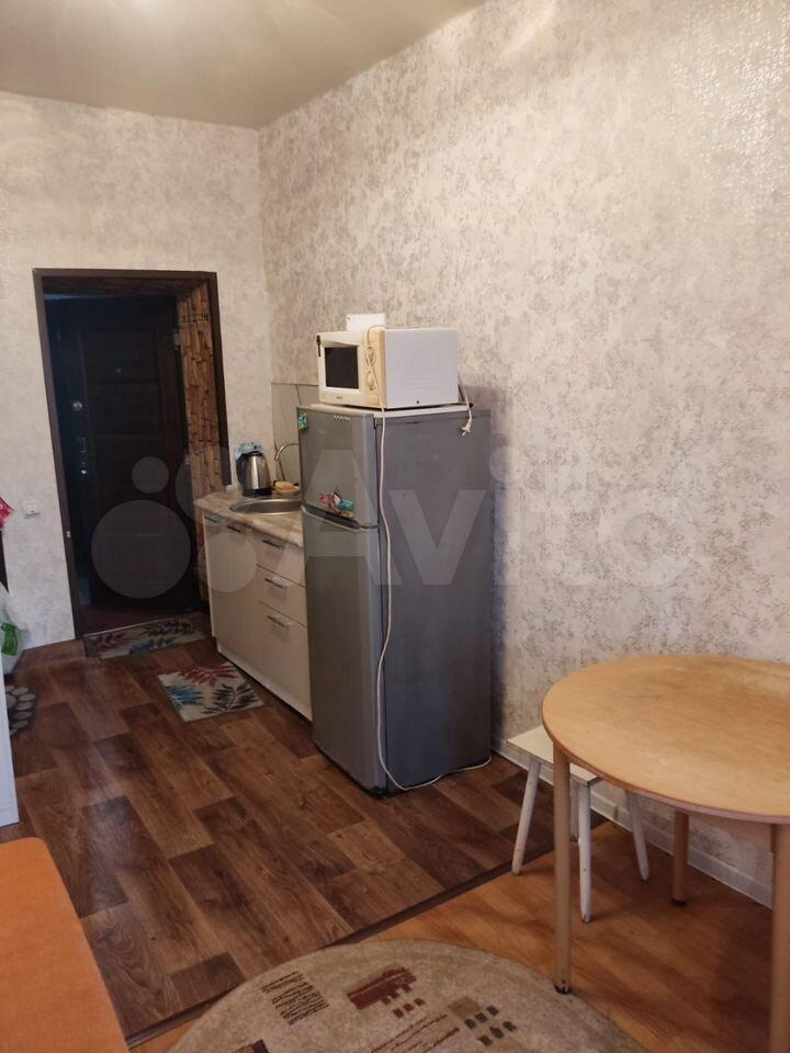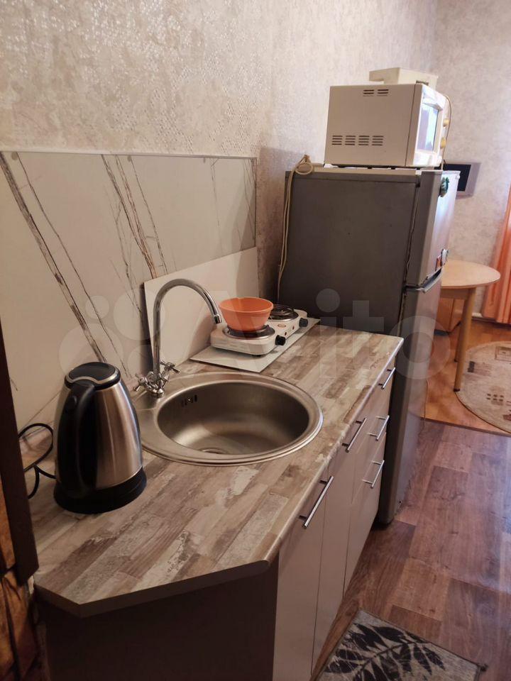 В квартире имеются холодильник, микроволновая печь, варочная поверхность, электрочайник, стиральная машина, пылесос, телевизор; диван, стол со стульями, небольшие шкафы.