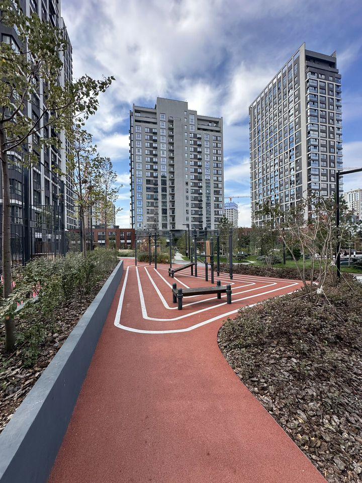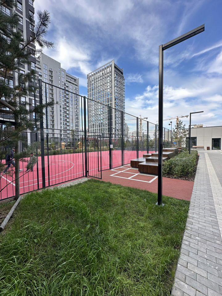 Дом оснащен пассажирским и грузовым лифтами, интернетом и подземной парковкой. Жилой комплекс находится в отличном состоянии, так как дом только что построен. Рядом находятся школы, детские сады и магазины, что делает его идеальным местом для комфортного проживания с семьей.