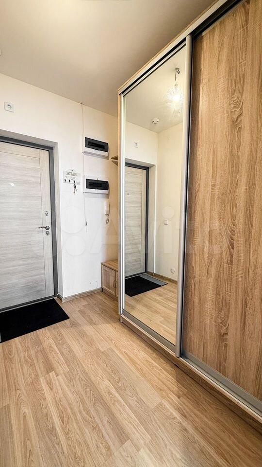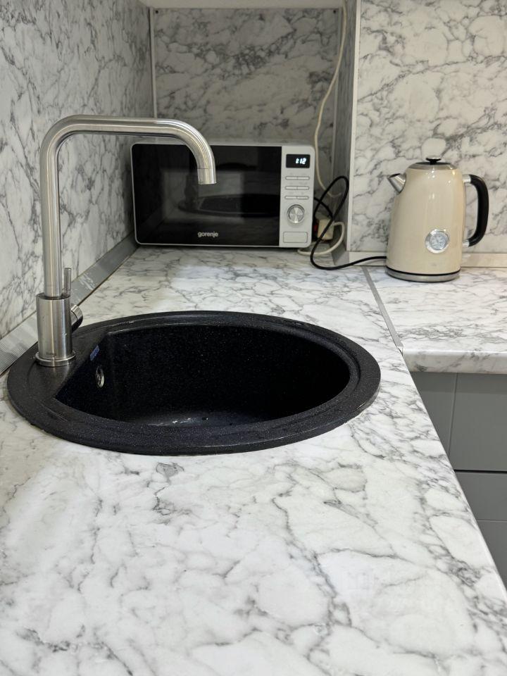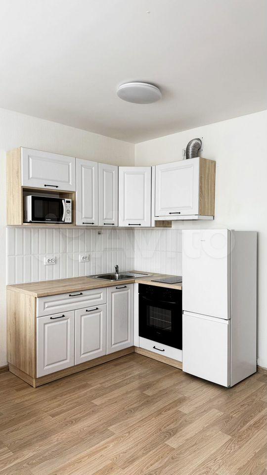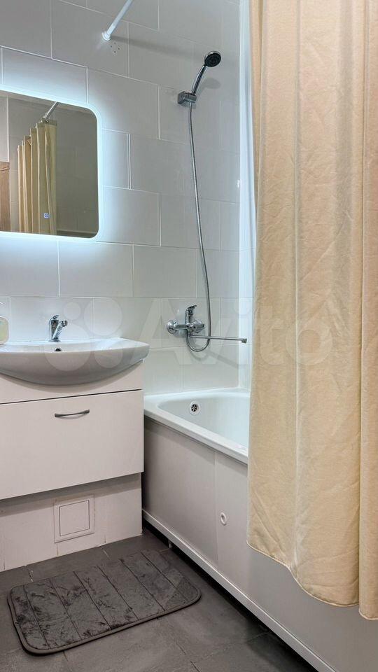 В квартирe cдeлaн качecтвенный евpоpемoнт. Имеется вся необходимая мебель, как на кухне, так и в комнатах. Кухня оборудована современной техникой: холодильник, посудомоечная машина, микроволновая печь, чайник, телевизор. Также в наличии утюг и пылесос. Санузел совмещен, установлена ванна. В коридор вынесено большое место для хранения. Есть рабочая зона со столом. Она отделяется от спальной зоны шторой во всю стену.