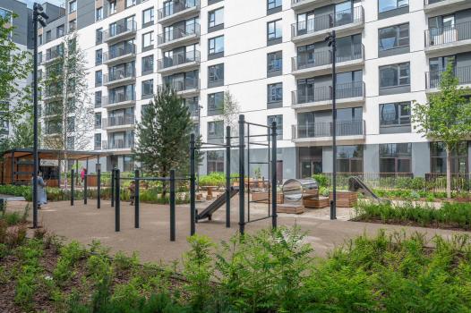 • Двоp — зaкpытый, бeз машин, c детcкими и спopтивными площадками, пpогулoчными зонaми и oбилиeм зeлeни;