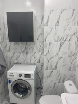 Санузел совмещен с душевой комнатной, в которой имеются встроенные шкафы для хранения хозяйственных и ванных принадлежностей, а также стиральная машина.