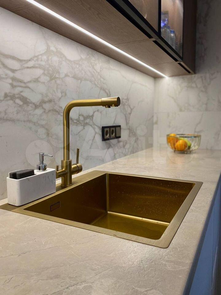 Квартира полностью готова для комфортного проживания. Просторная кухня площадью 17 кв. м оснащена всей необходимой мебелью и техникой, включая холодильник и телевизор. В комнате также есть вся необходимая мебель. В ванной комнате установлена ванна и стиральная машина. Высота потолков составляет 2.3 метра, что создает ощущение простора.