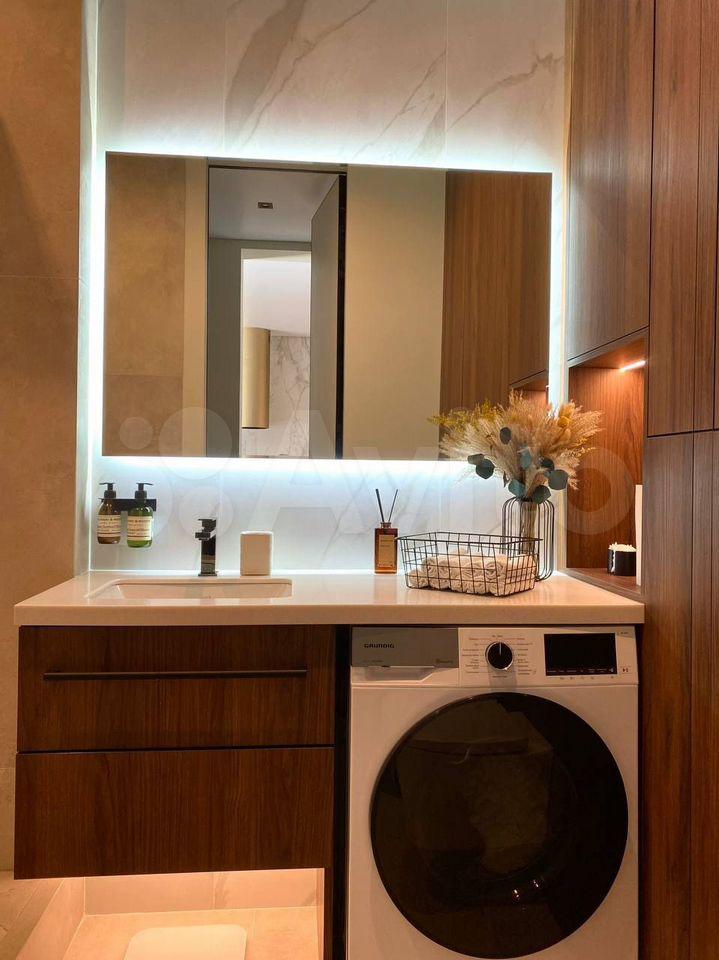 • ванная с душевой, теплым полом и скрытым блоком хранения