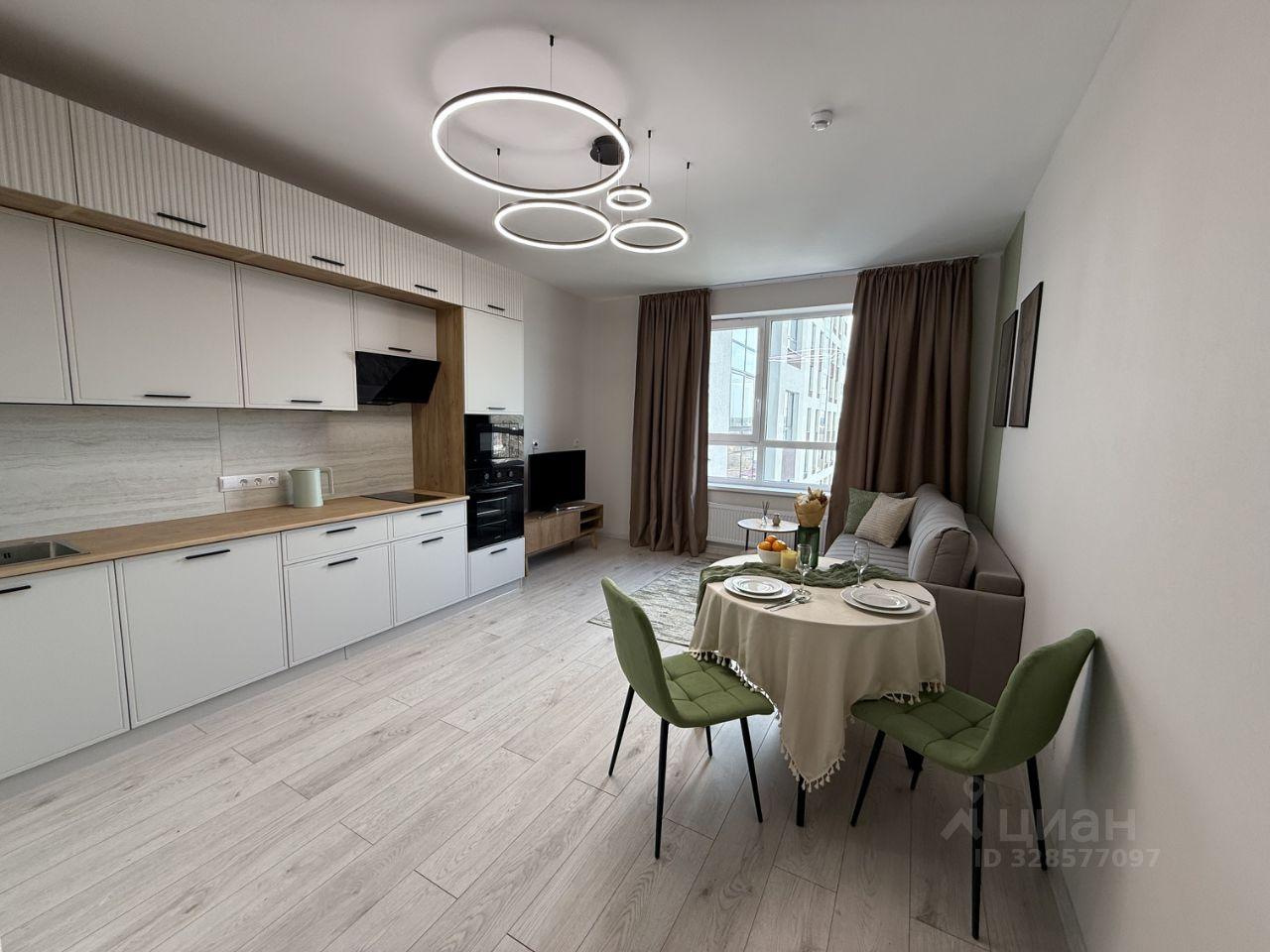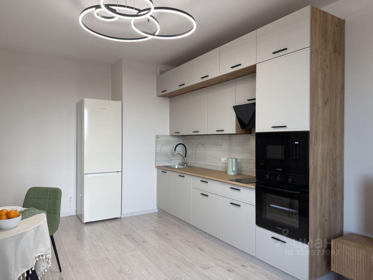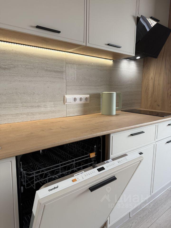 В квартире выполнен косметический ремонт, который придаёт ей свежий и аккуратный вид. Кухня оснащена необходимой бытовой техникой, включая холодильник и микроволновую печь. В наличии посудомоечная машина и современная вытяжка, духовой шкаф, чайник, варочная панель, трехступенчатая система очистки воды и телевизор со смарт-приставкой. Большое количество шкафов для хранения, необходимый набор посуды и столовых приборов. Так же имеется кухонный стол (раскладной), стулья и диван (двуспальный).