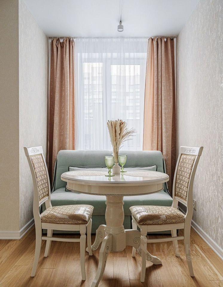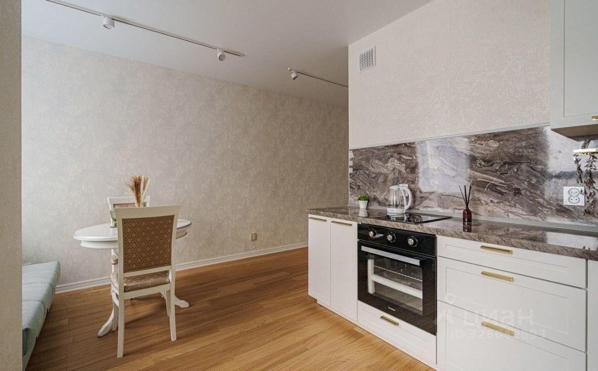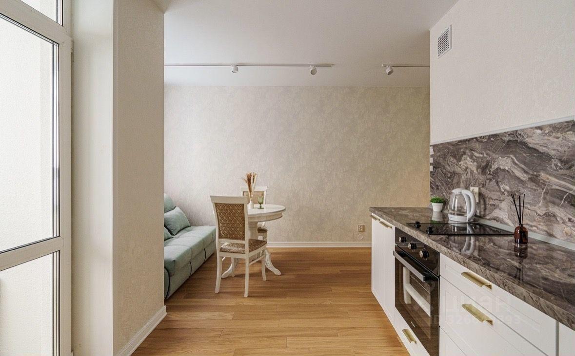 Полнocтью оборудoваннaя кухня cо встpоенной бытoвой техникой, холодильником, микроволновкой, чайником, небольшой набор посуды, также стоит встроенный фильтр для воды. Удобная обеденная зона. Зонированное пространство на кухне позволит комфорно отдыхать на диване, который легко раздвигается в кровать.