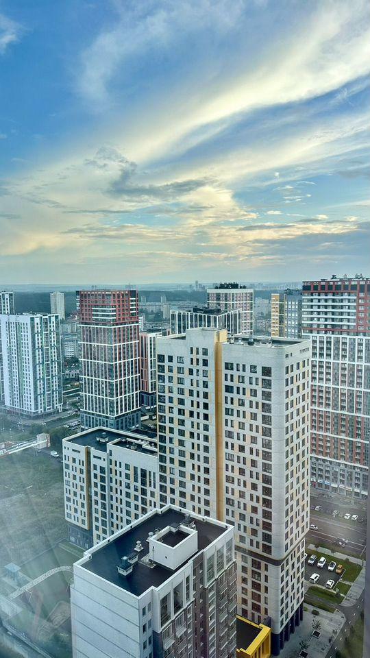Квартира расположена на 23 этаже и из окон открывается шикарная панорама на южную часть города Екатеринбург.
