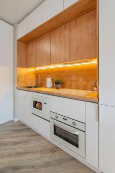 санузел - совмещённый, мебель - кухня, хранение одежды, спальные места, кондиционер, холодильник, плита, микроволновка, стиральная машина, посудомоечная машина, телевизор.