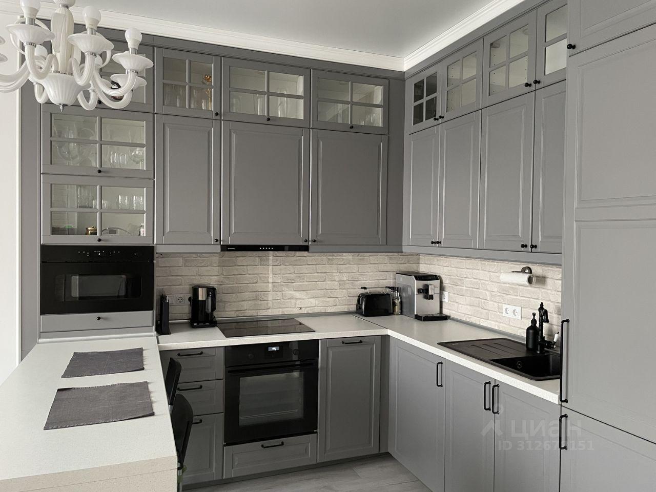 Кухня ИКЕА, с большим количеством мест для хранения( техника: встроенная микроволновая печь, холодильник, духовой шкаф), встроен питьевой фильтр