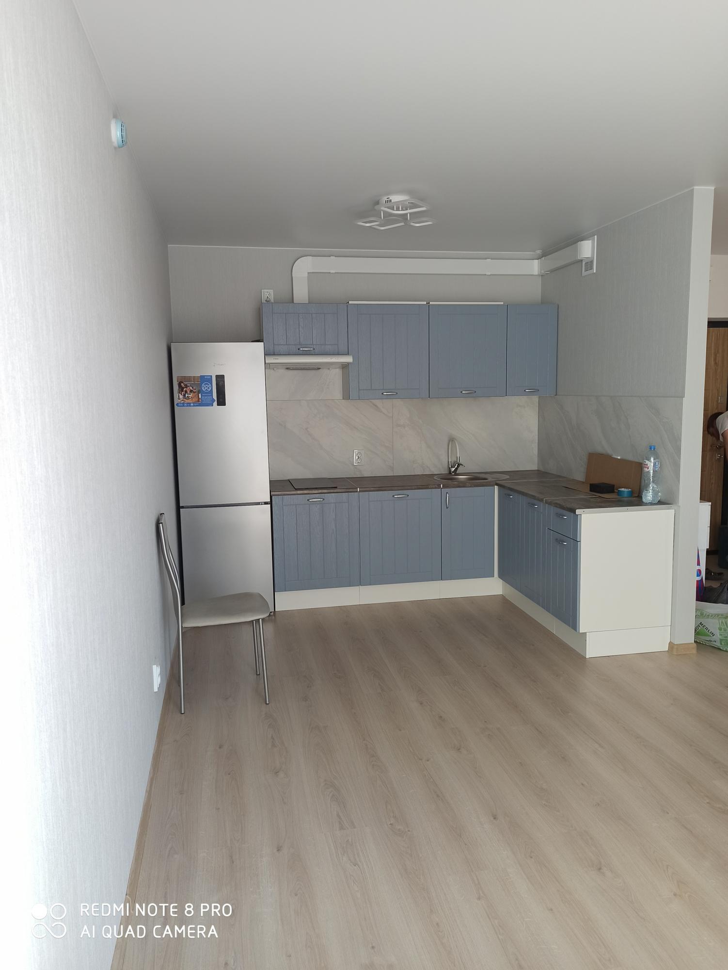 В кухне-гостинной телевизор, посудомоечная машина 60 см, плита, духовка, микроволновая печь, холодильник, остаются все кухонные принадлежности.