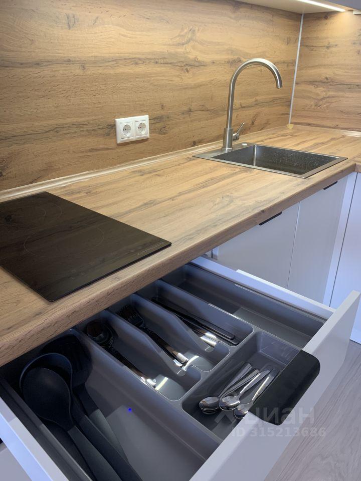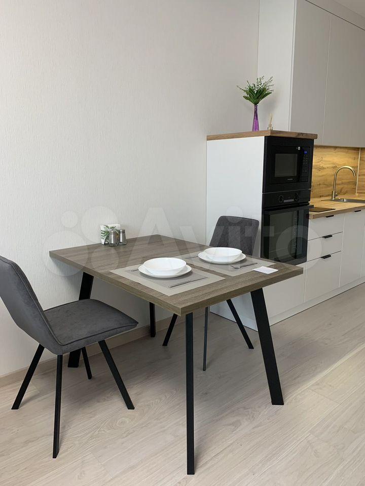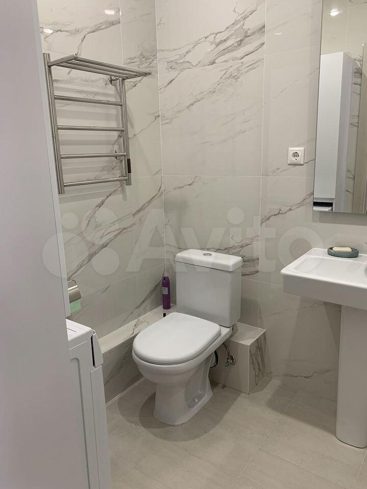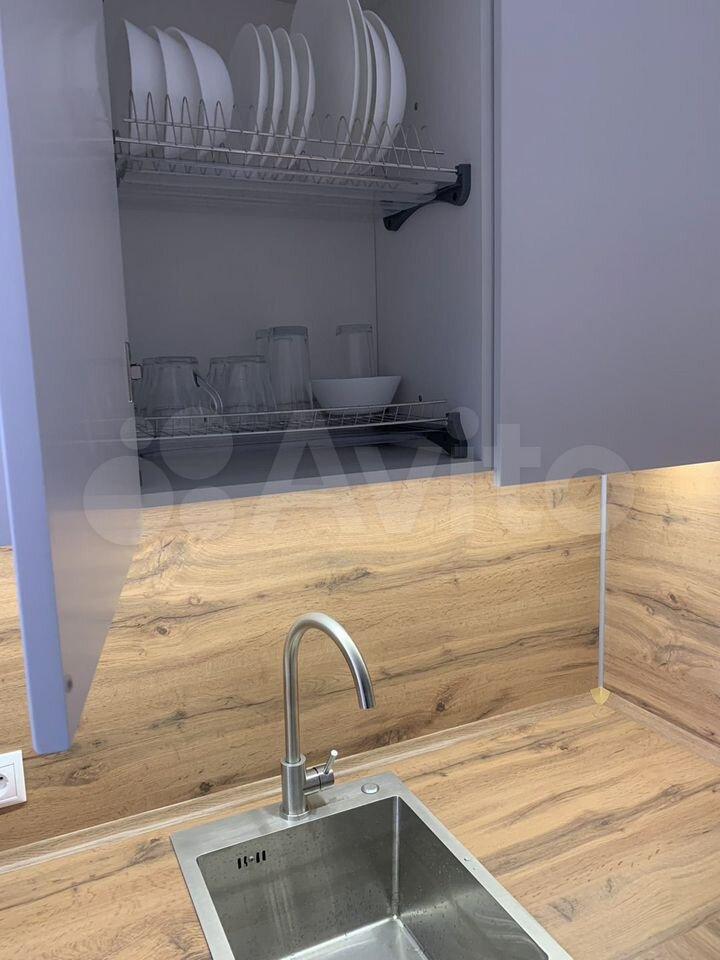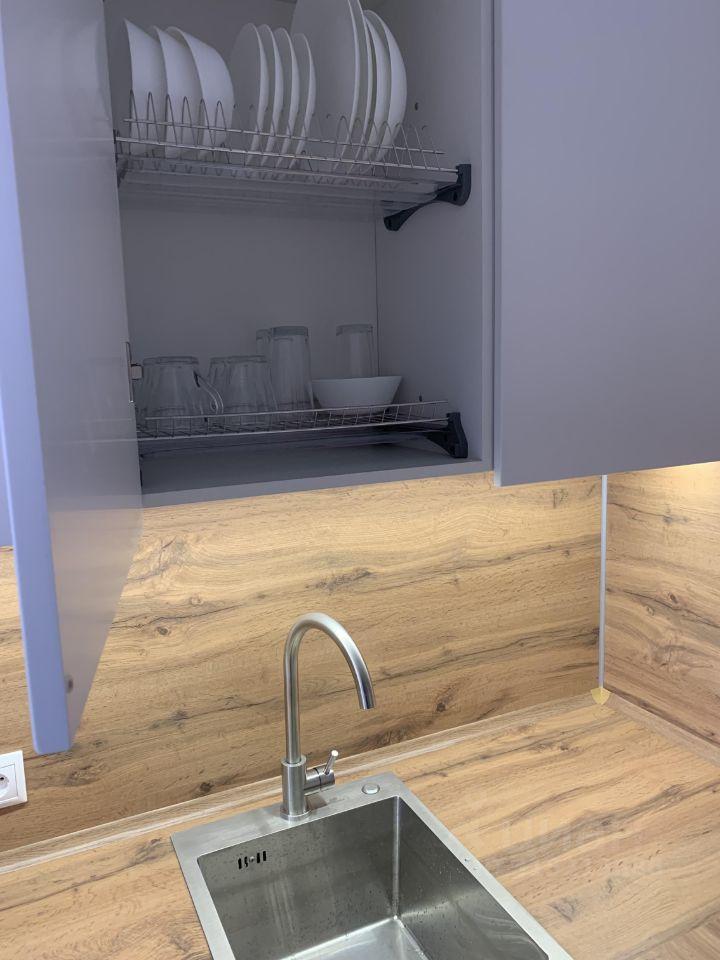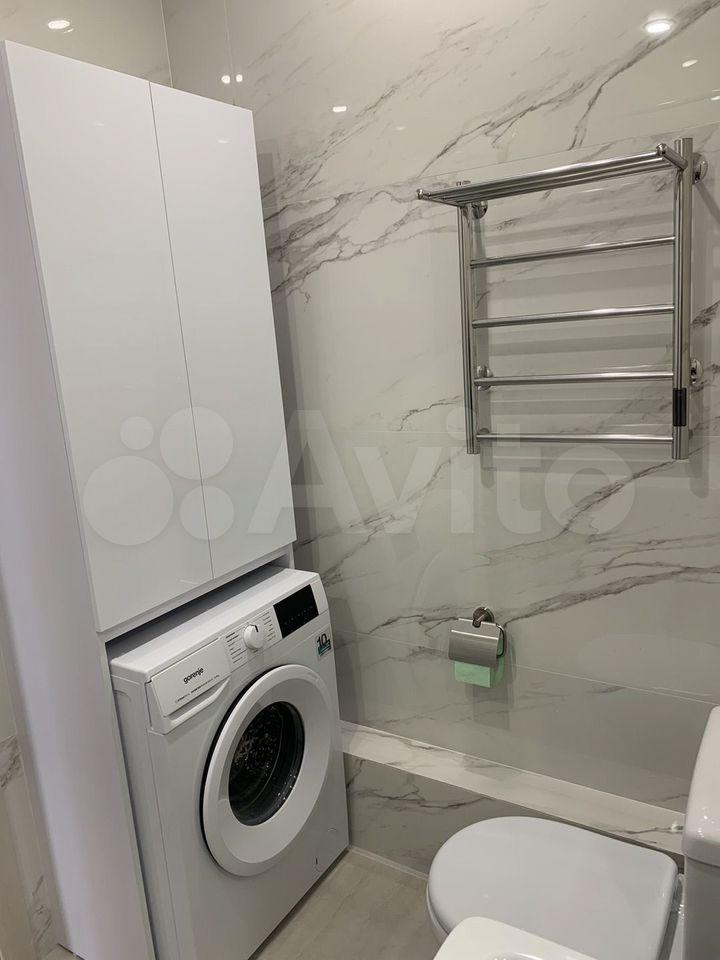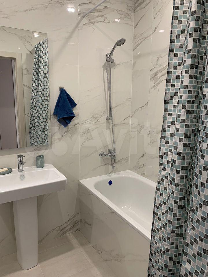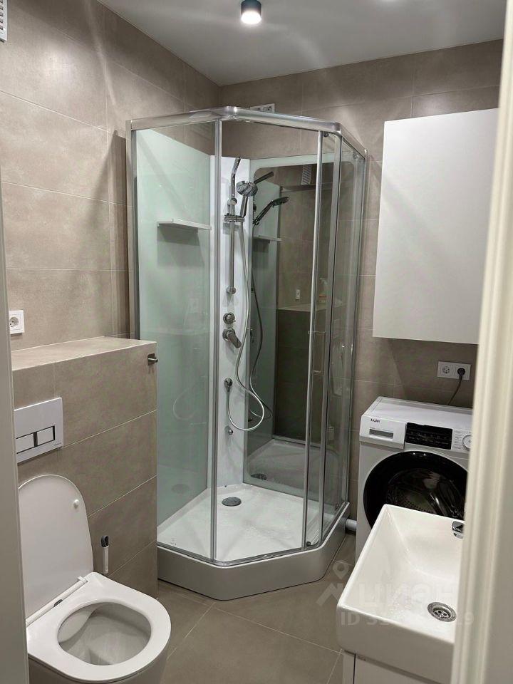 В квартире есть всё необходимое для комфортного проживания: современная мебель на кухне и в комнате, а также полный набор техники — холодильник, телевизор, посудомоечная и стиральная машины. Санузел совмещённый, оборудован современной душевой кабиной.