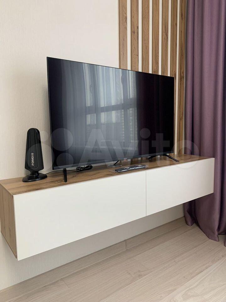 В квартире имеется: двух-спальная кровать (160*200) , шкаф в прихожей и спальне, телевизор (50) в кухне-гостиной, диван раскладной, стулья, стол, кухонный гарнитур, духовой шкаф, варочная поверхность, холодильник встроенный, вытяжка, стиральная-сушильная машина, посудомойка, чайник.