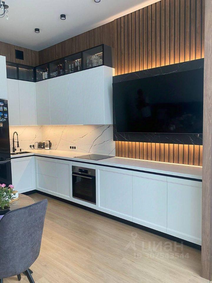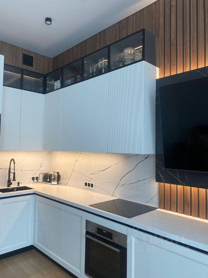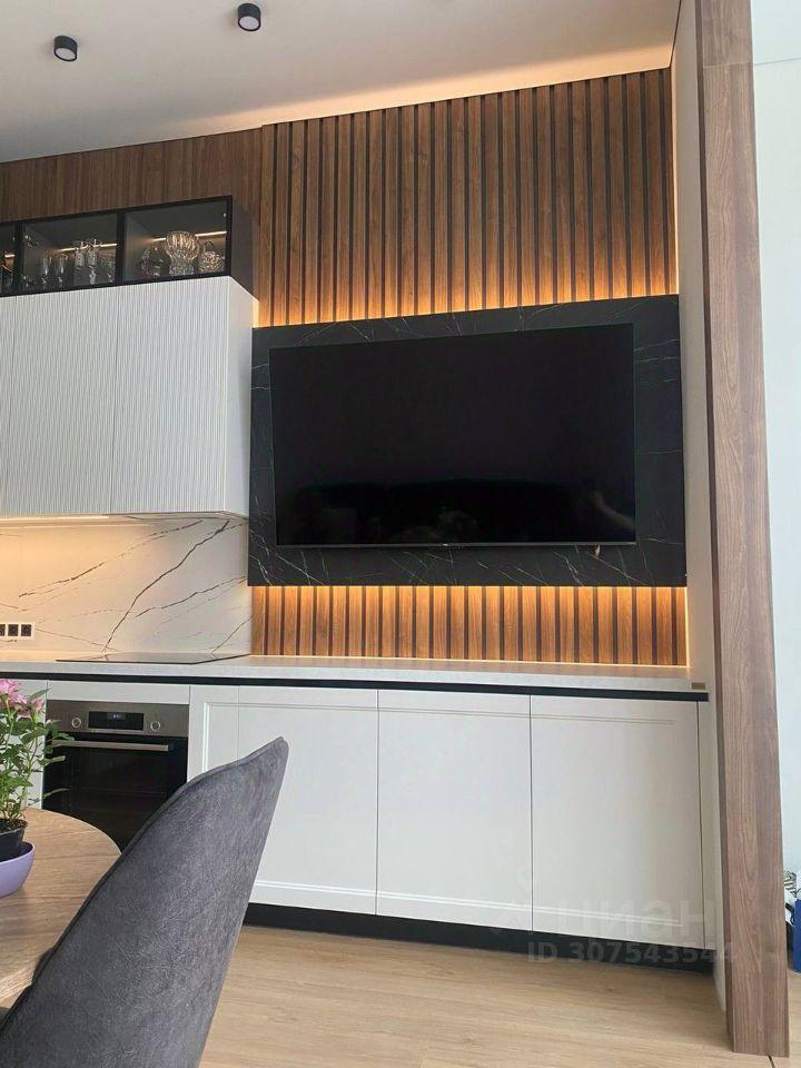 В квартире сделан ремонт: всё видно на фото, полностью оборудована кухня, встроенные шкафы, прихожая, гардеробная, кроме санузла с косметическим ремонтом от застройщика.