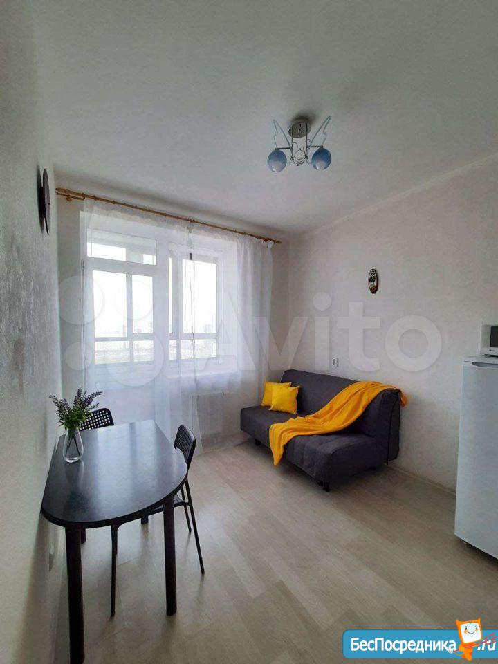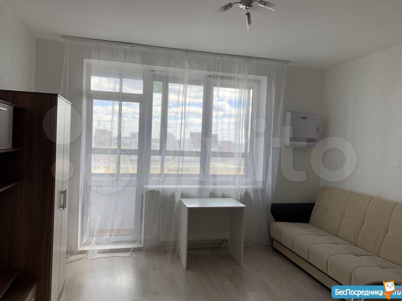 Сдам уютную студию на 25 этаже. С мебелью и кухонной техникой, всё готово к проживанию. Интернет от Планеты.