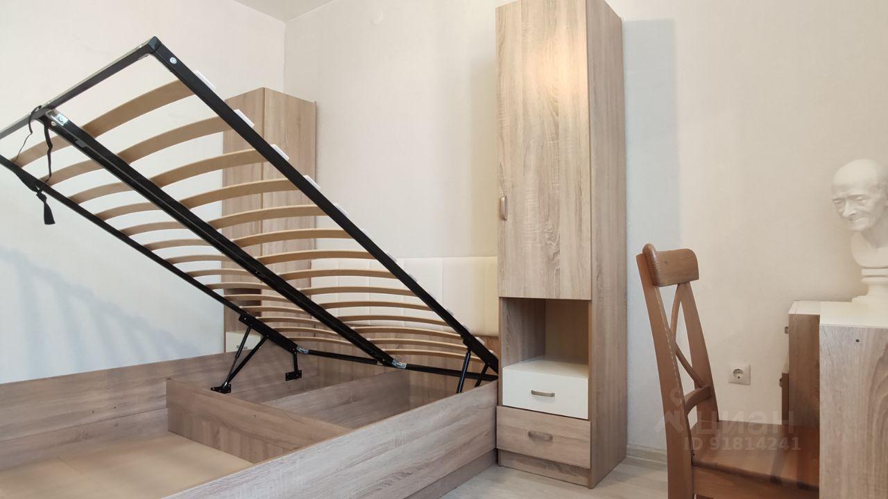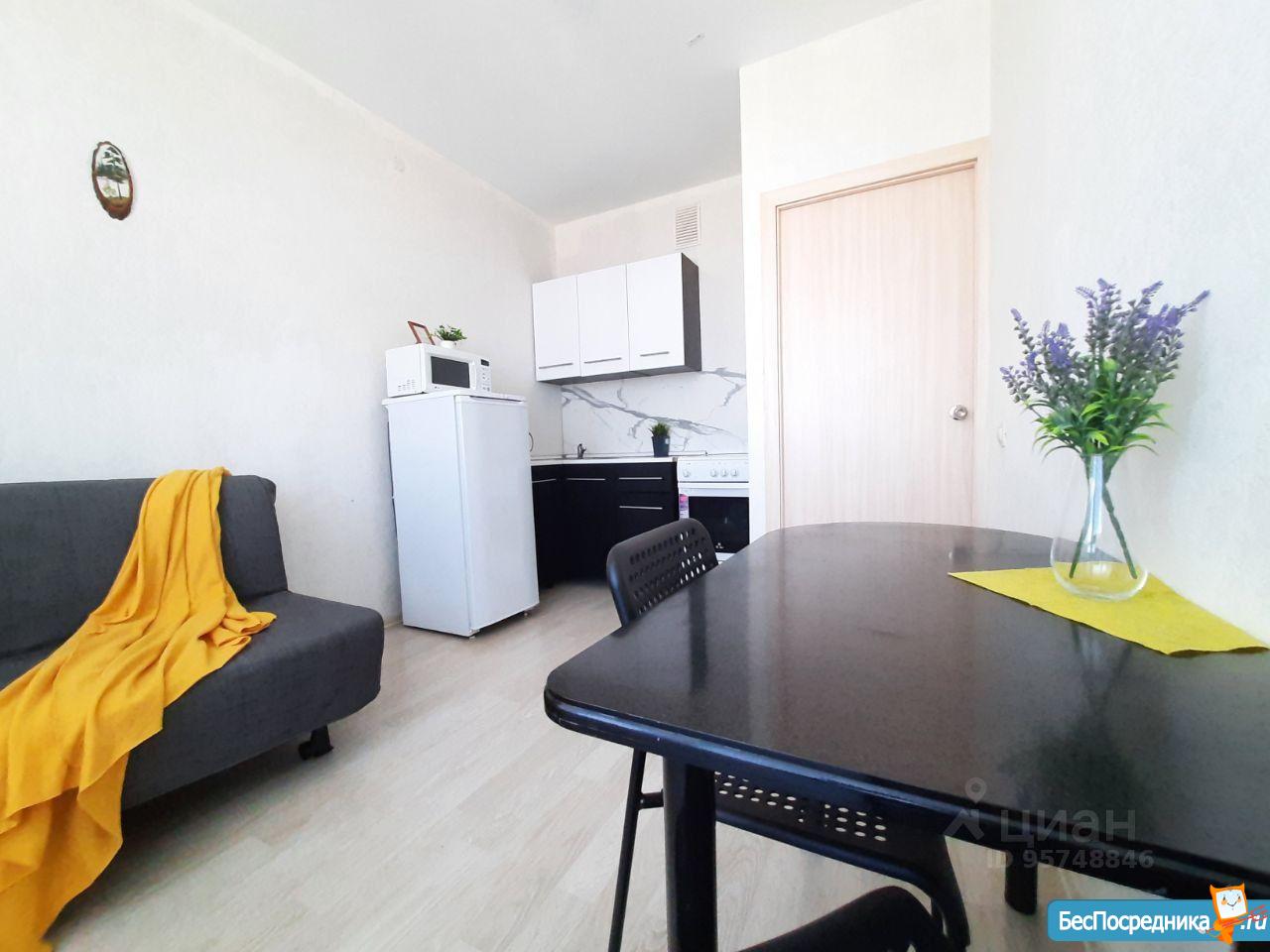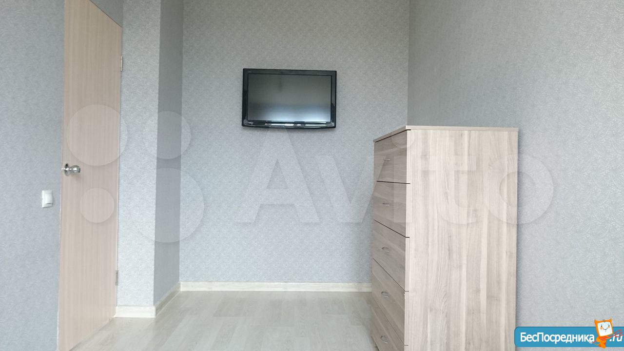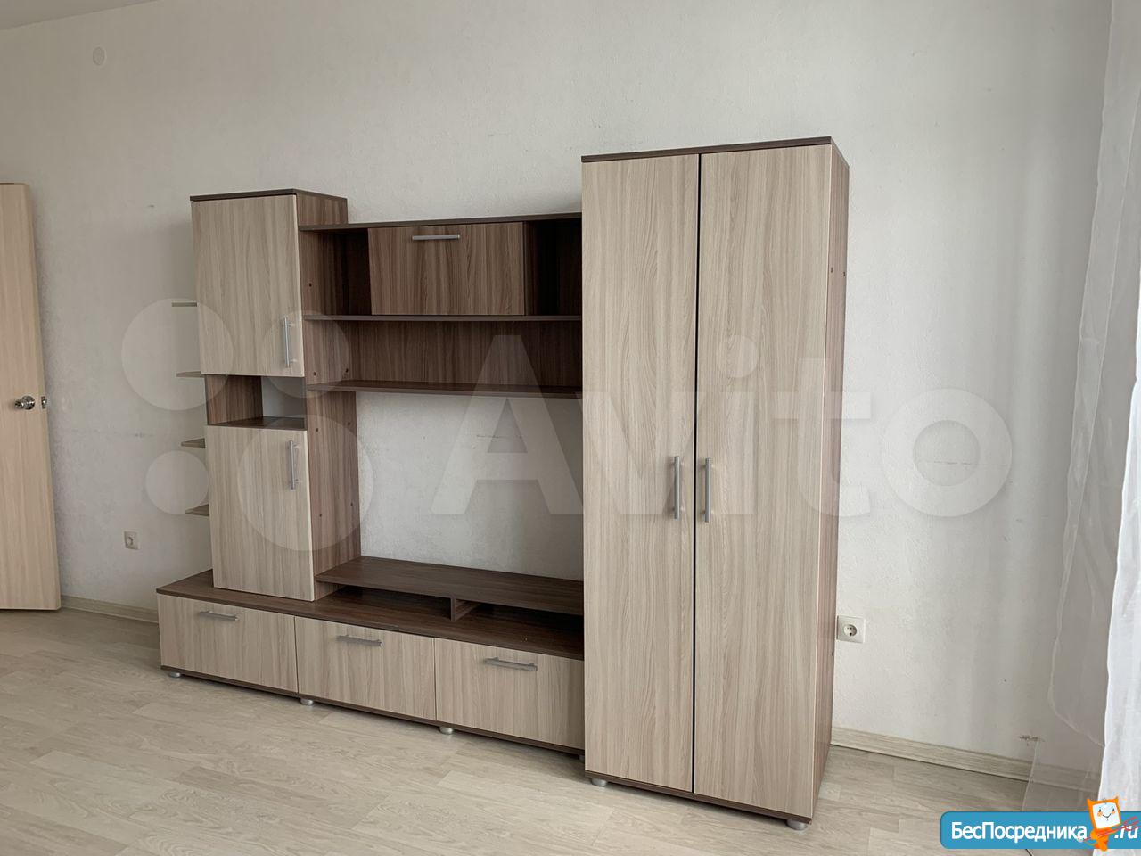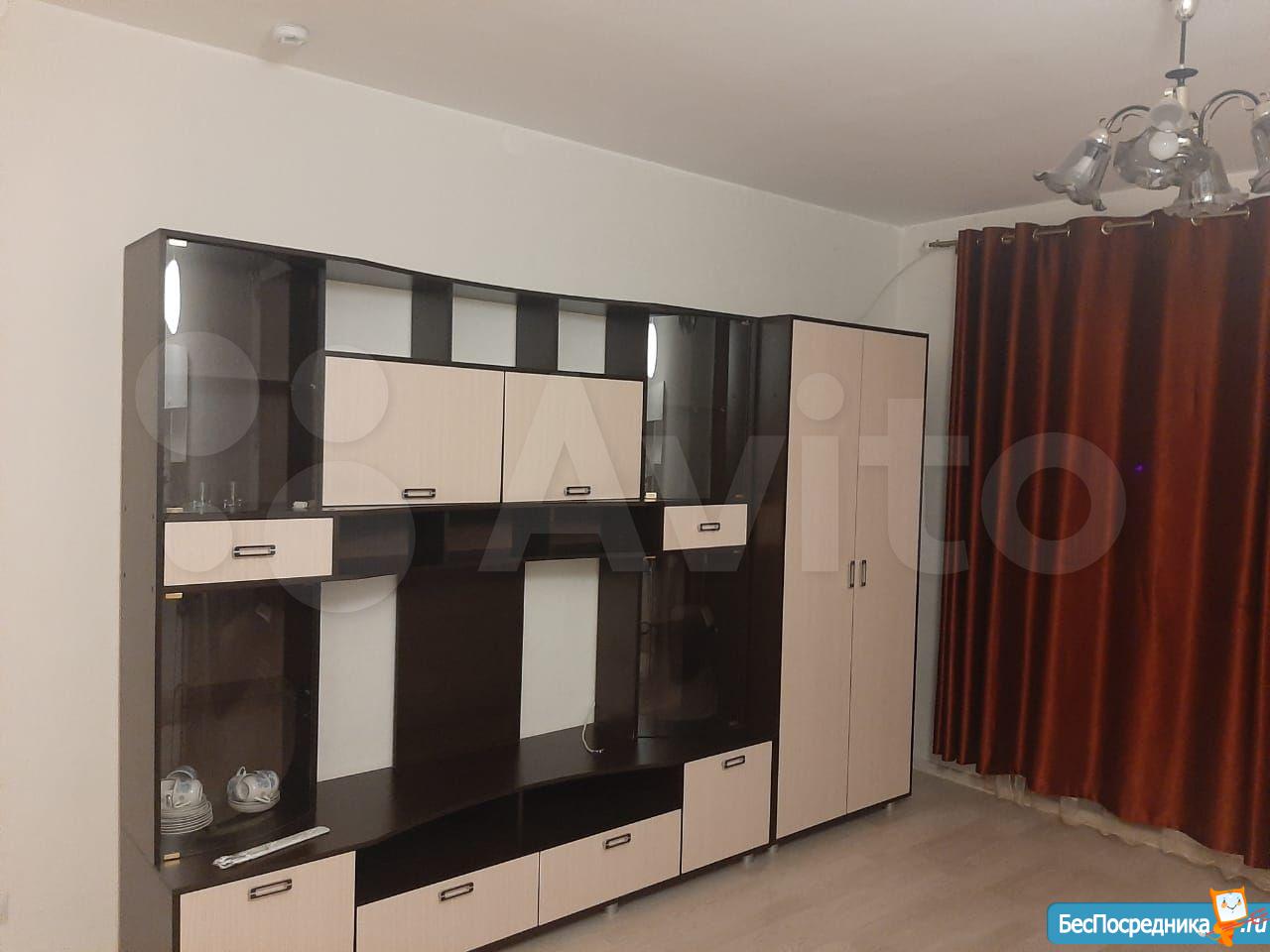 Сдаётся евро-двушка (кухня-гостиная и спальня). На кухне есть вся необходимая посуда и техника (плита электрическая, духовка, холодильник, чайник, кофеварка, мультиварка). В гостиной диван раскладной, два кресла, стол рабочий, стол обеденный, книжные полки, телевизор. В спальне есть шкаф для одежды, туалетный столик с комодом и зеркало, два пенала, каркас двуспальной кровати.