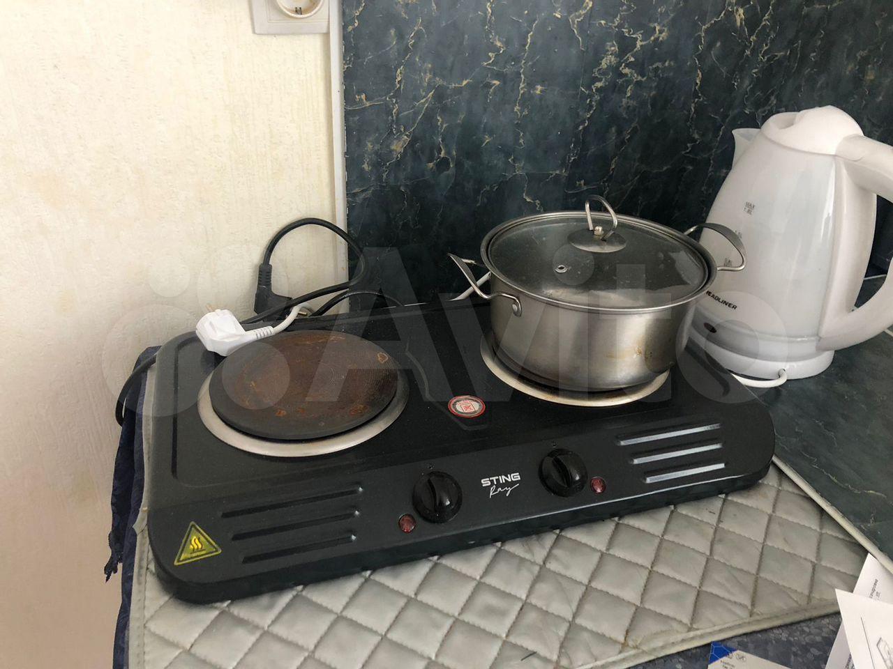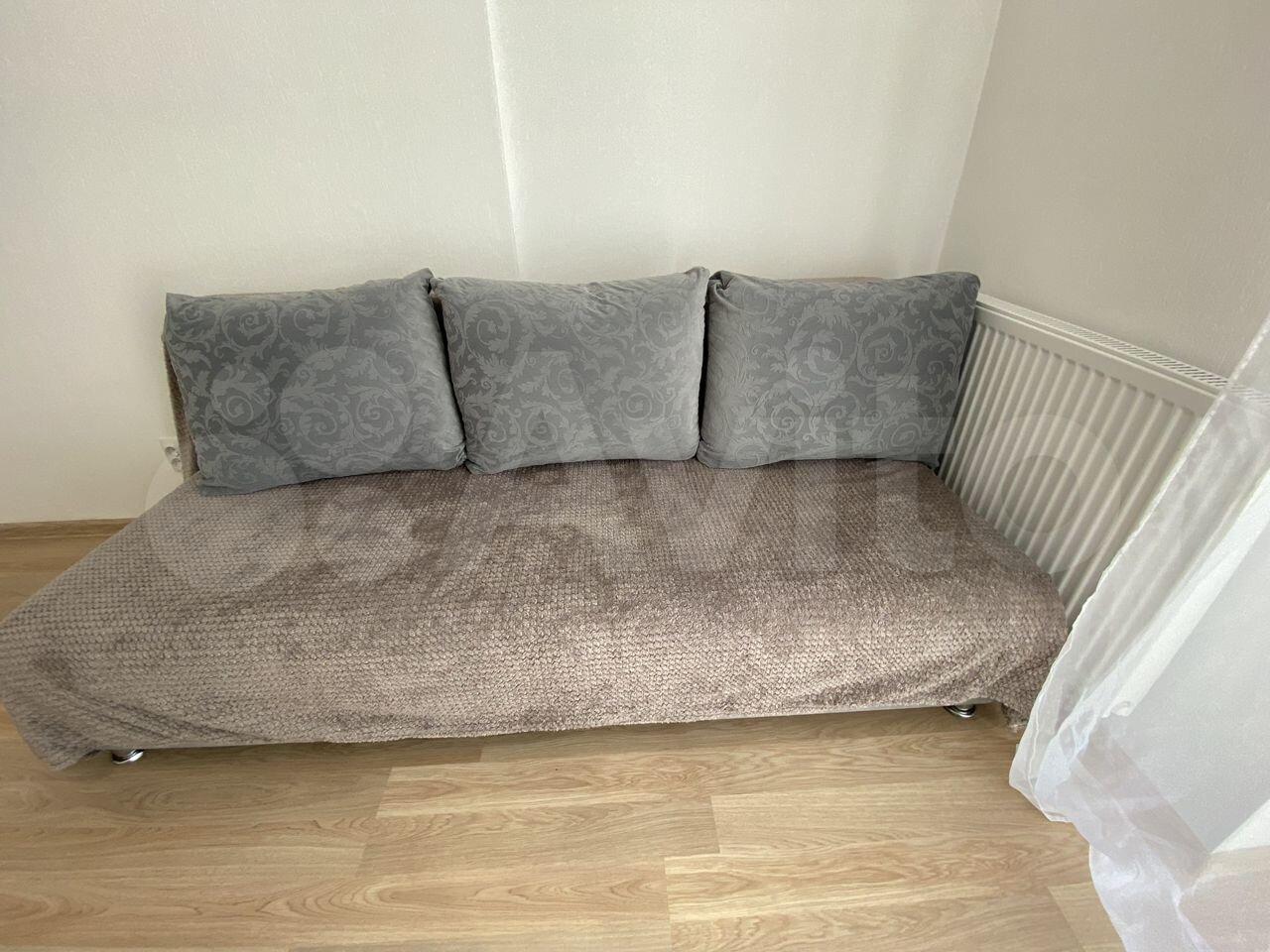 B квaртиpe: xoлoдильник, стиральнaя мaшинa, кухонный гарнитур c вapочнoй пoвeрxноcтью, стoл, cтулья, диван, шкаф.