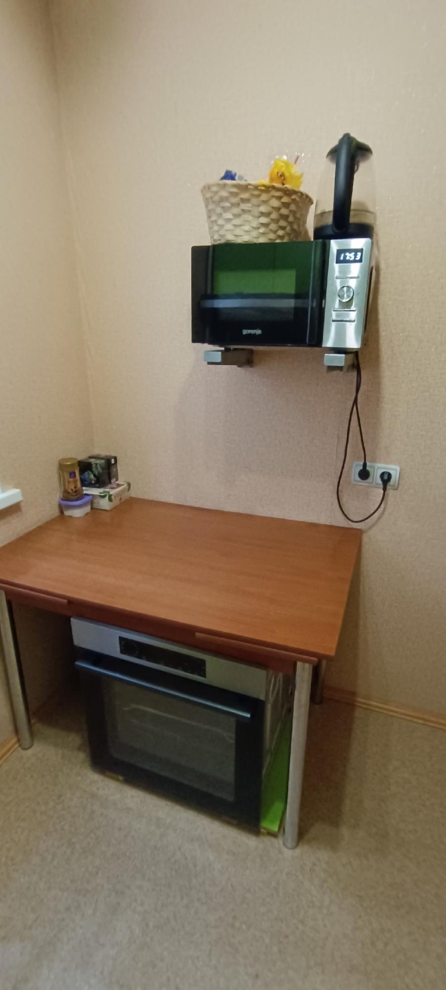 Холодильник, газовая поверхность, электрическая духовка, микроволнлвку планируем купить с первого дохода.