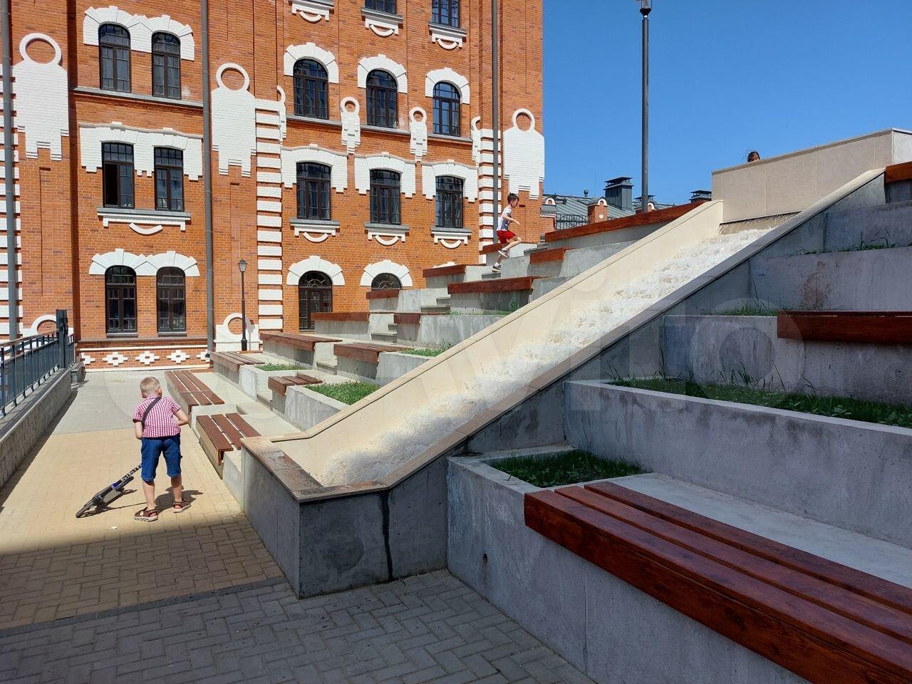 Новый жилой комплекс МЕЛЬНИЦА, охрана, большой двор с беговыми дорожками, тренажерами, игровыми площадками, амфитеатром с фонтаном.