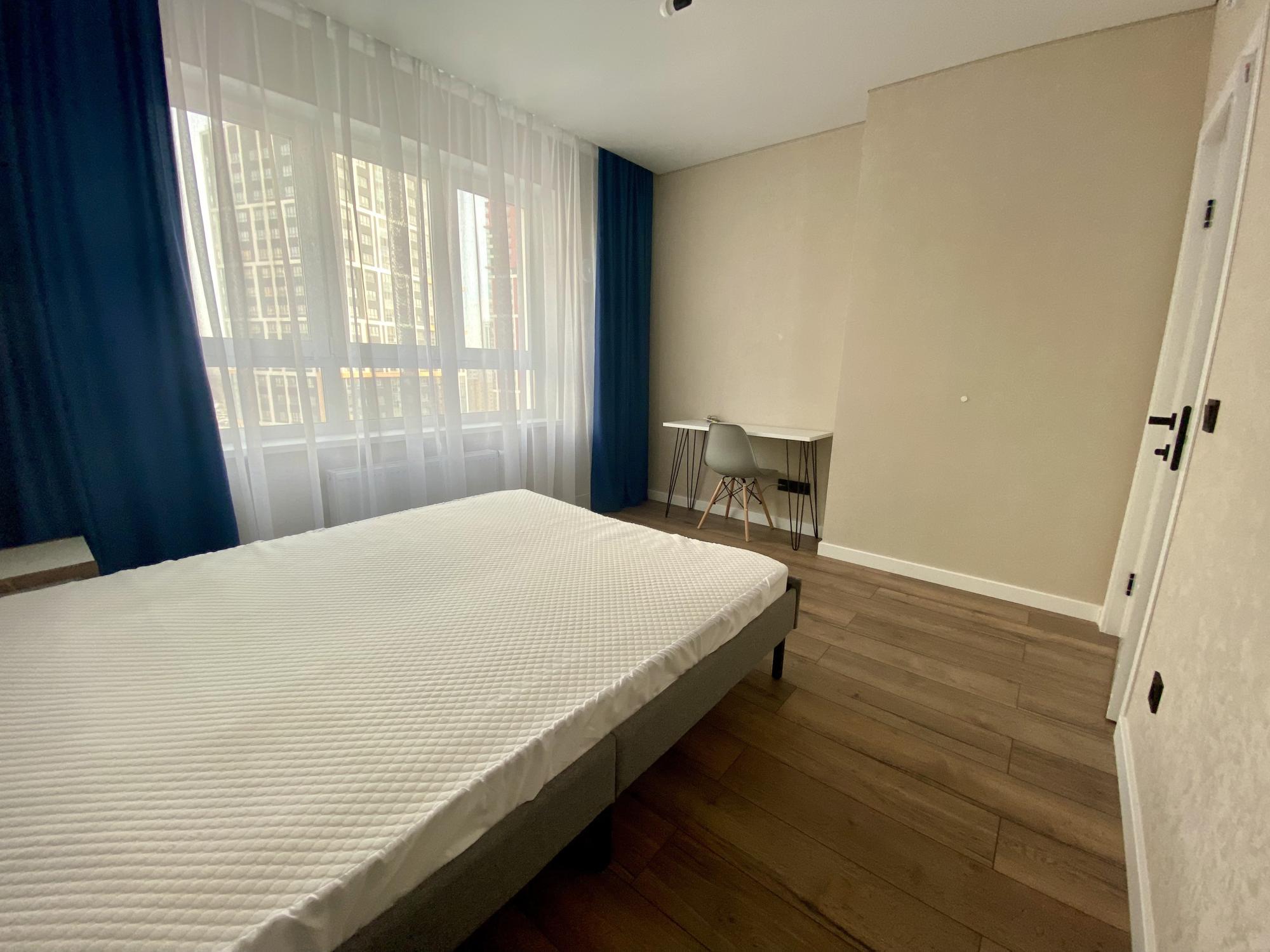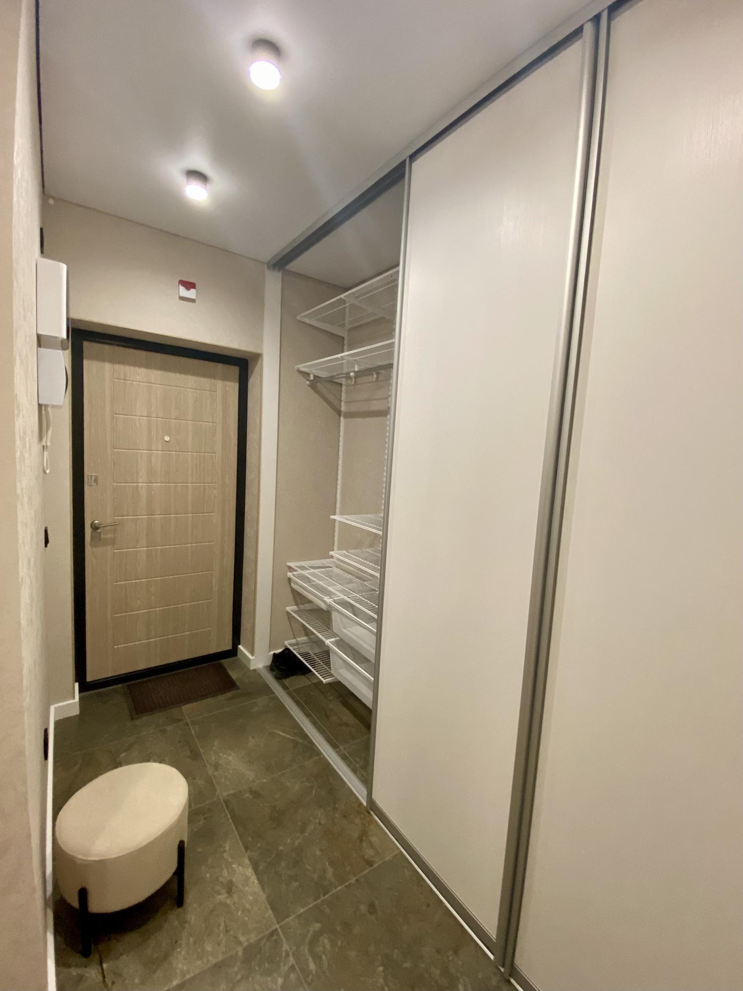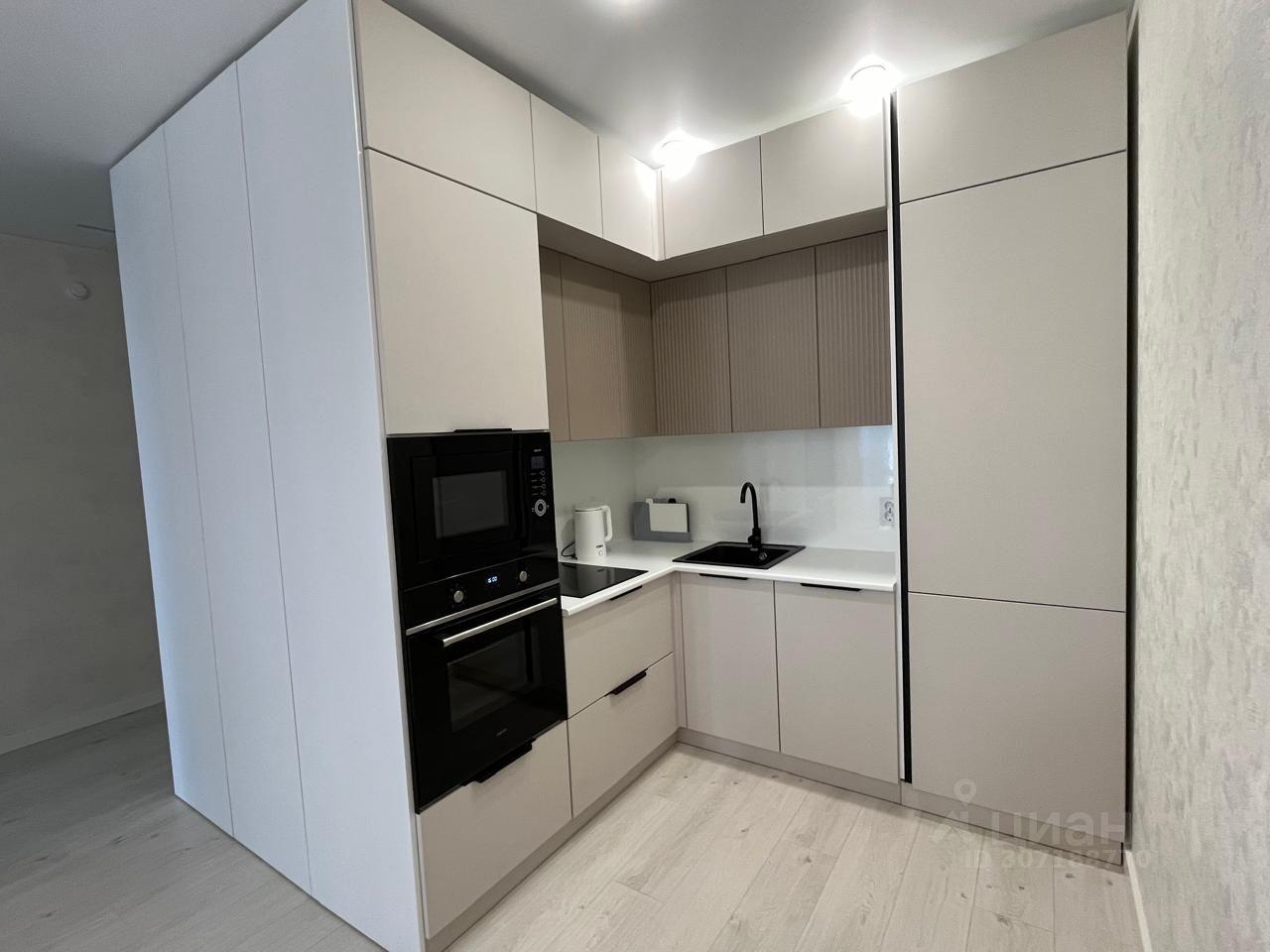 В квартире качественный ремонт с использованием качественных и дорогих материалов, оборудована кухонная зона (гарнитур, обеденная зона, варочная поверхность, холодильник и др.), установлен минимальный набор мебели (шкаф, двуспальная кровать, тумба в спальню, диван), установлена стиральная машина и водонагреватель. В коридоре предусмотрен шкаф-купе с организацией места хранения вещей. Прекрасный вид из панорамных окон на 3 стороны света (восток/юг/запад). Подключен скоростной интернет 300 Мб/с. Возможно дополнительное обсуждение оборудования квартиры с потенциальным долгосрочным арендатором.