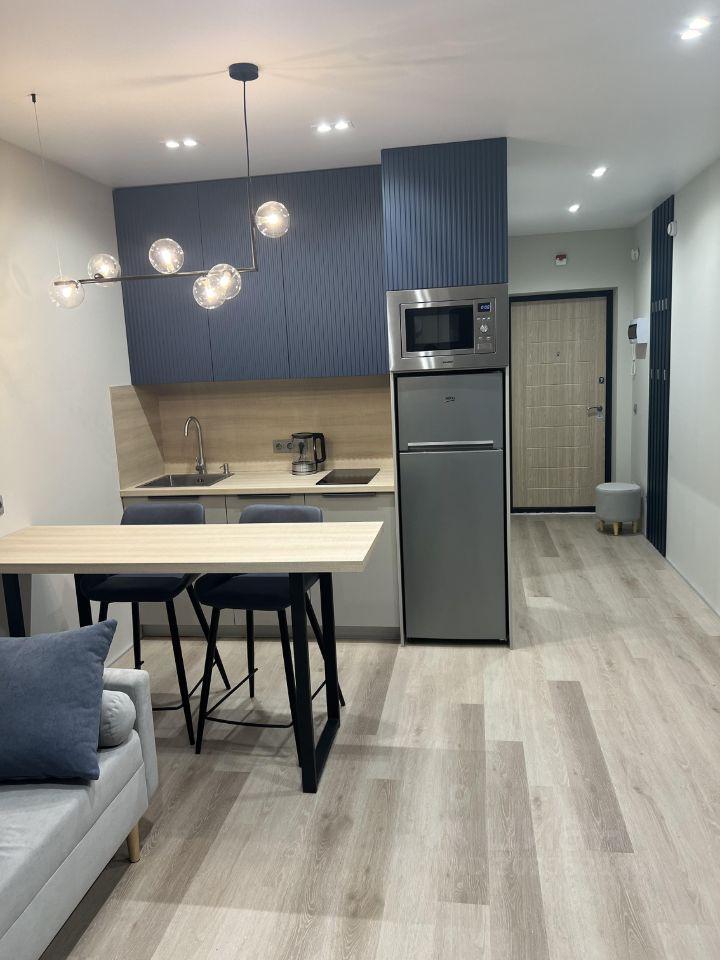 Сдается уютная студия в новом доме. В квартире есть все необходимое для проживания. Кухня оборудована микроволновкой, холодильником, посудомоечной машиной и варочный поверхностью. Установлен кондиционер.