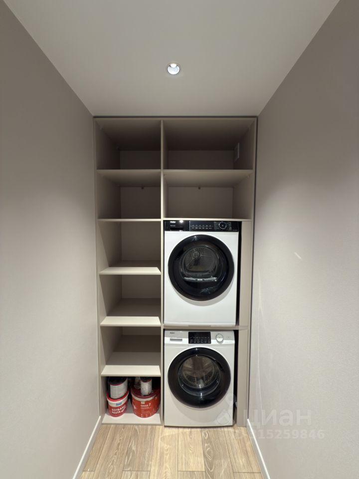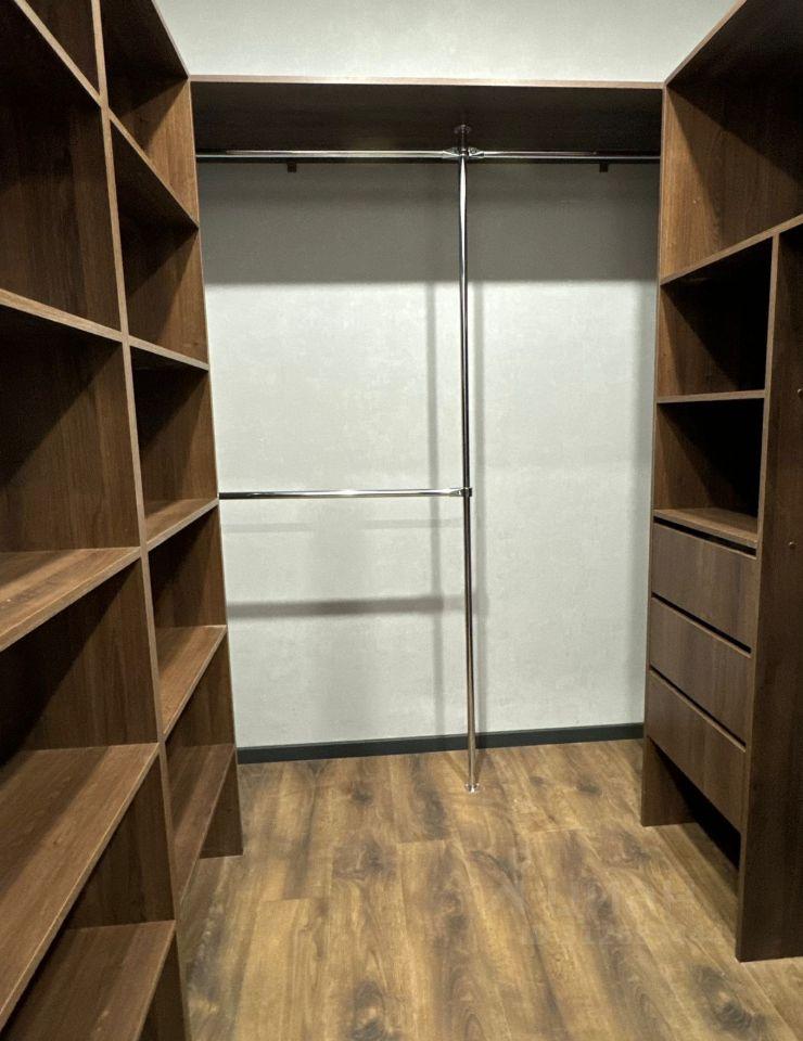 Имеется отдельная гардеробная-прачечная с системой хранения, стиральной машиной, утюгом, сушкой