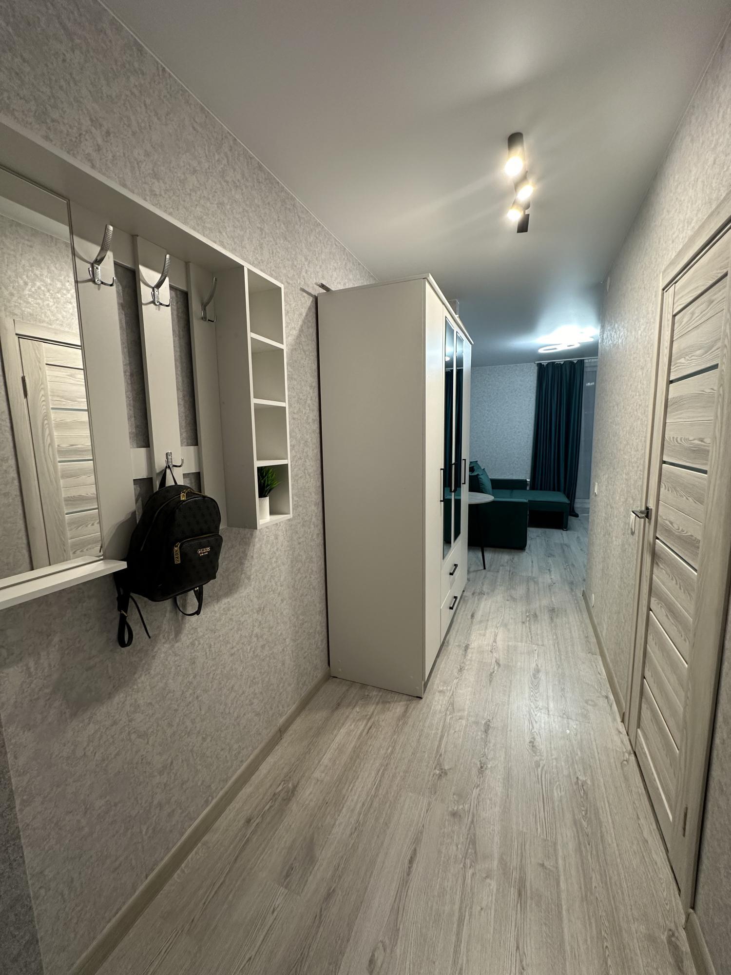 В квартире есть все для проживания: диван, прихожая, кухонный гарнитур, стол, стулья, холодильник, чайник, стиральная машинка, телевизор, плита, душевая. Вид из окна выходит во двор. В доме 2 лифта, закрытый благоустроенный это-двор оснащен системой видеонаблюдения и круглосуточной охраной. Вход на территорию осуществляется по системе электронных пропусков. Внутренний двор оборудован современными детскими площадками, и также мастам для отдыха взрослых. Во входных группах предусмотрено помещение для хранения детских колясок, велосипедов и самокатов . Есть парковка.