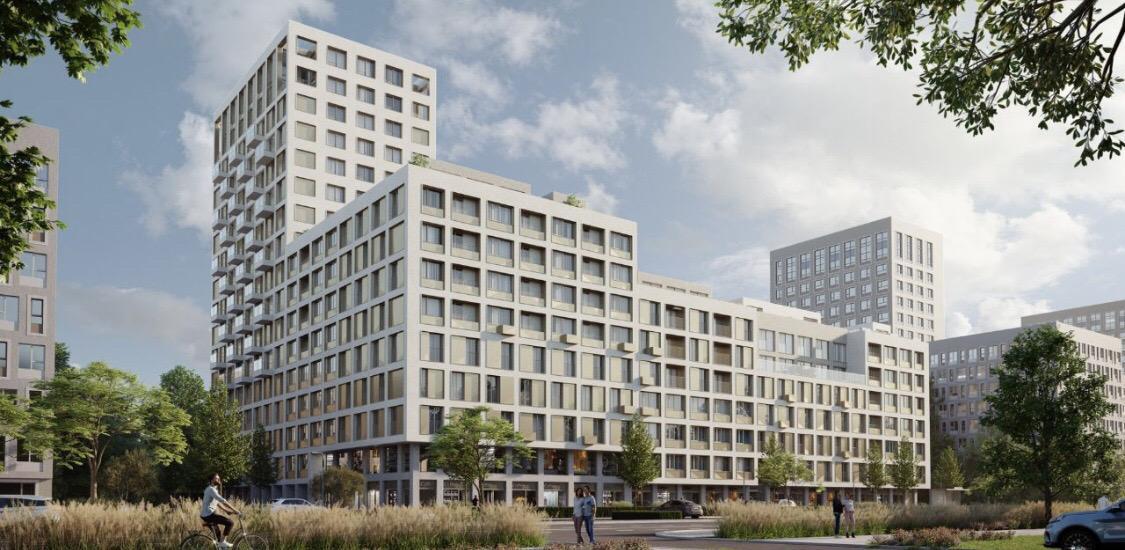 Комплексное развитие территории: открытый и подземный паркинг, закрытый зелёный двор-парк свободный от машин.