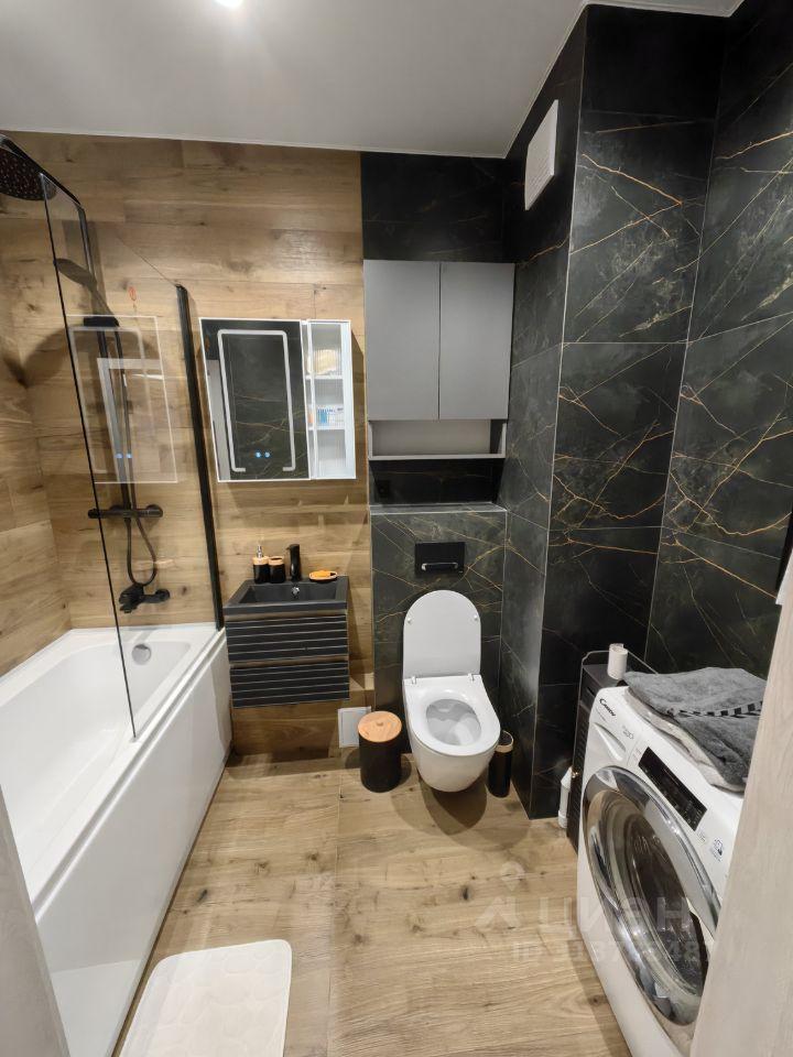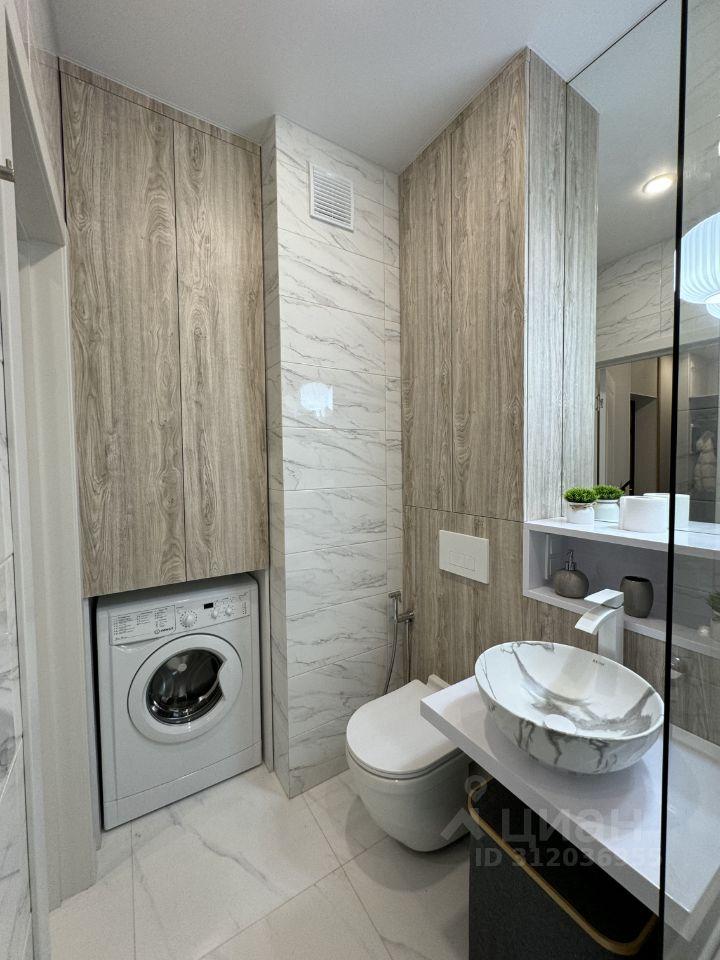 В ванной установлен водонагреватель, теплый пол и стиральная машина