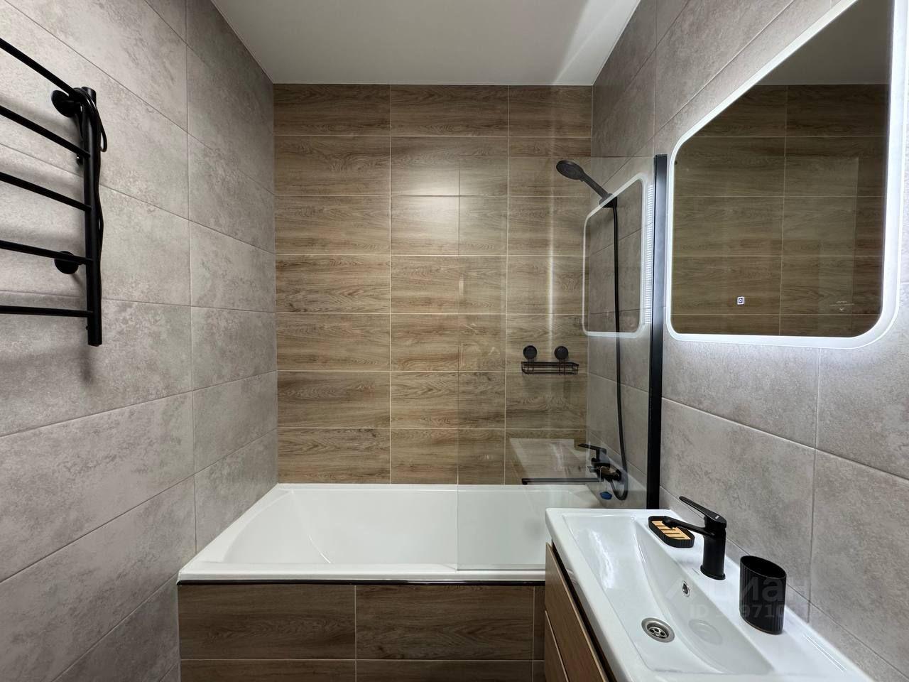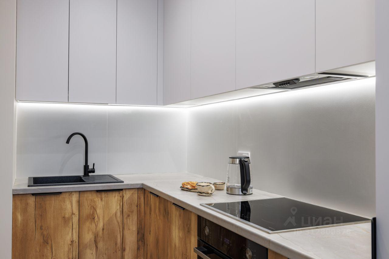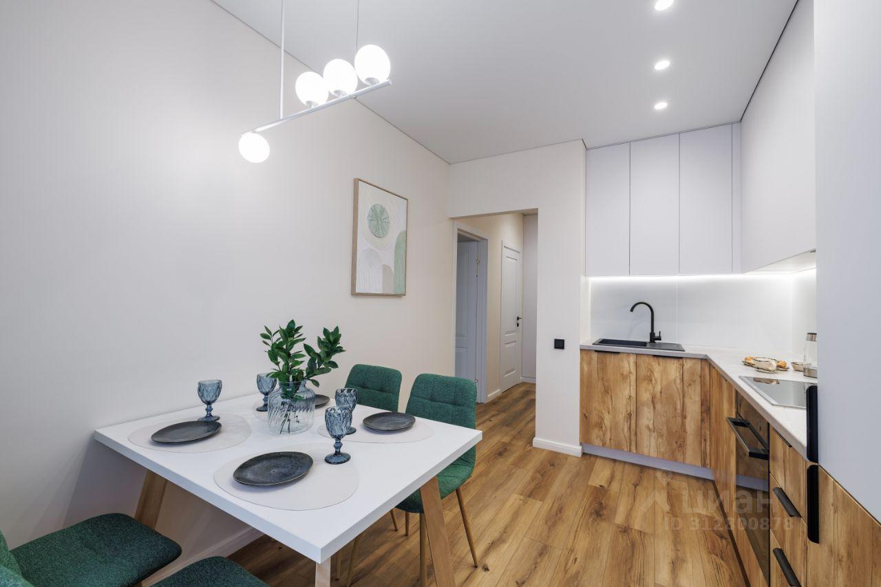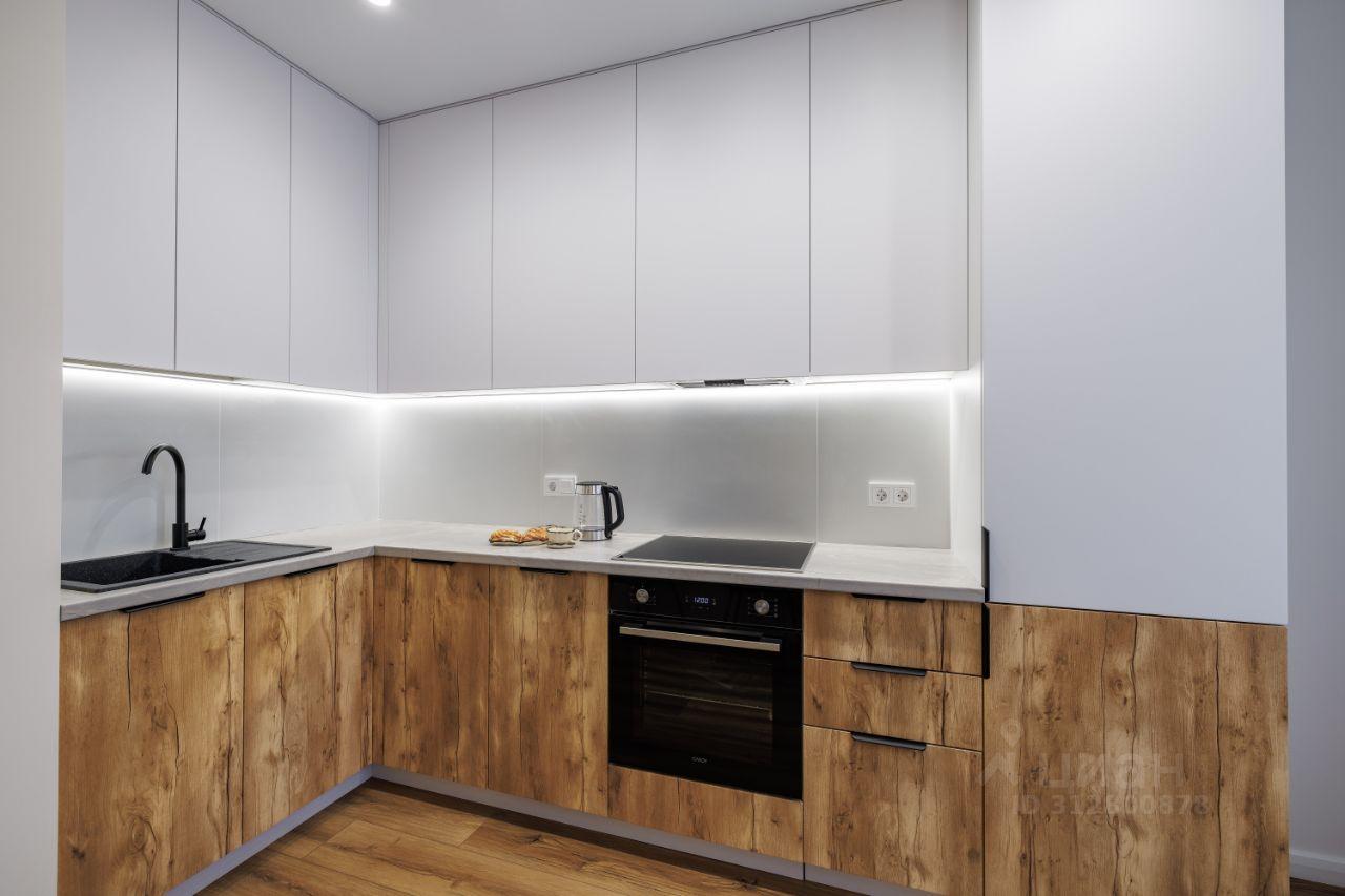 Дизайнерский ремонт выполнен в современном стиле, сочетающем светлые тона с элементами натурального дерева. В отделке использованы качественные материалы: полы с текстурой дерева, стильная кухня с матовыми фасадами, продуманное освещение, создающее уютную атмосферу.