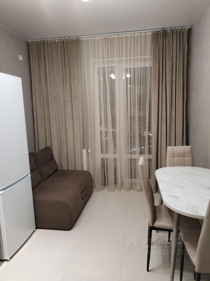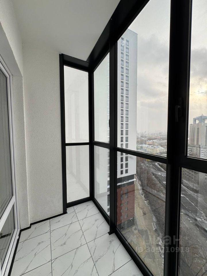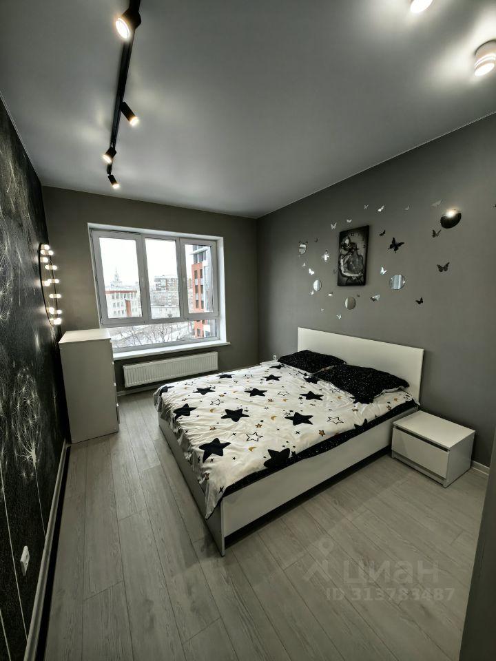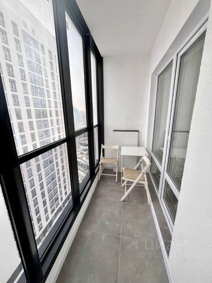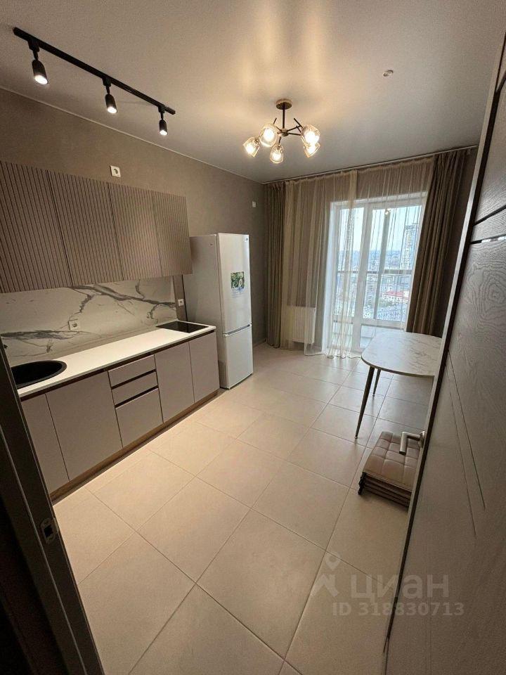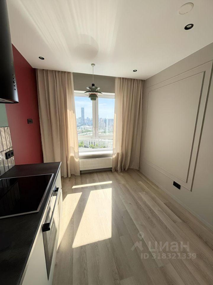 Сдаётся стильная однокомнатная квартира на 22 этаже современного жилого комплекса, расположенного на улице Свердлова, 32Б в Екатеринбурге. Общая площадь квартиры составляет 37 кв. м, из которых 15 кв. м отведены под жилую зону, а 11 кв. м занимают кухню. Дом был построен в 2024 году и оборудован тремя пассажирскими и одним грузовым лифтом. До станции метро "Динамо" можно дойти за 14 минут.