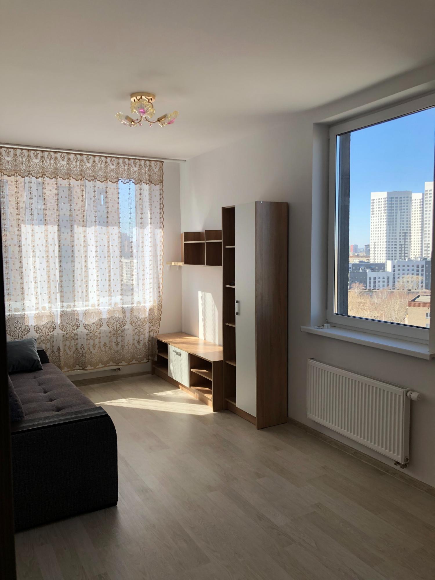 Сдается светлая, уютная квартира-студия 12/16 эт. в районе Пионерский ЖК "Современник". В квартире есть всё для комфортного проживания: кухонный гарнитур, электроплита, холодильник, электрический чайник, стиральная машина, микроволновая печь, посуда, двуспальный раскладываемый диван, комод, ЖК-телевизор, в коридоре 2 больших шкафа. Закрытая территория двора, домофон, интернет. На длительный срок. Без животных.