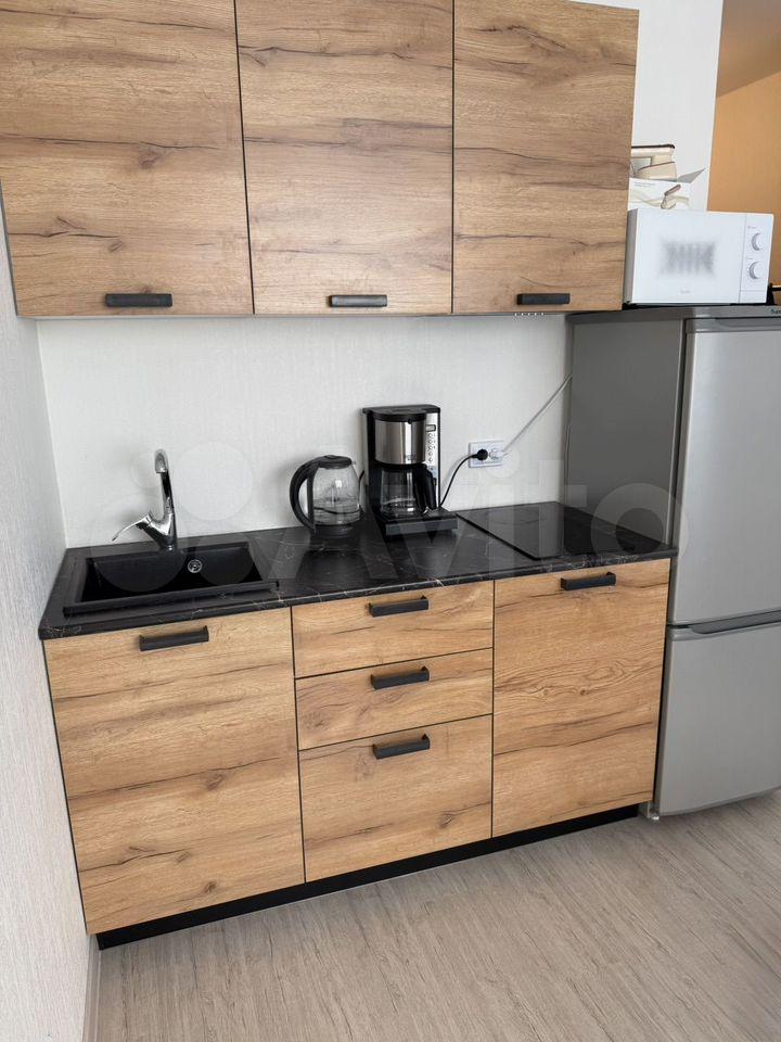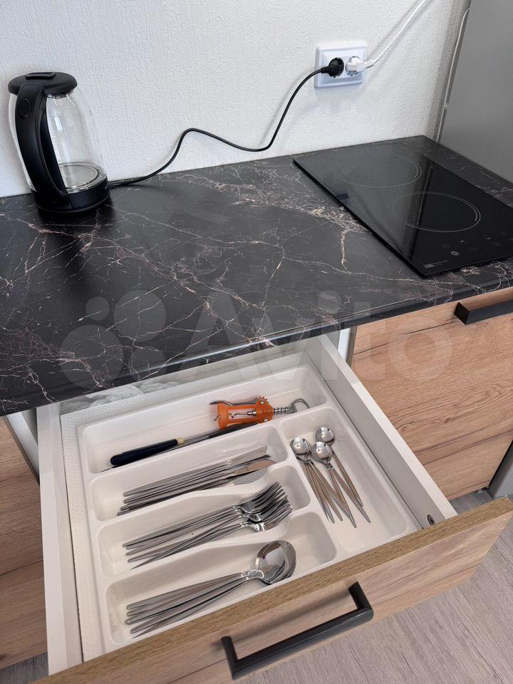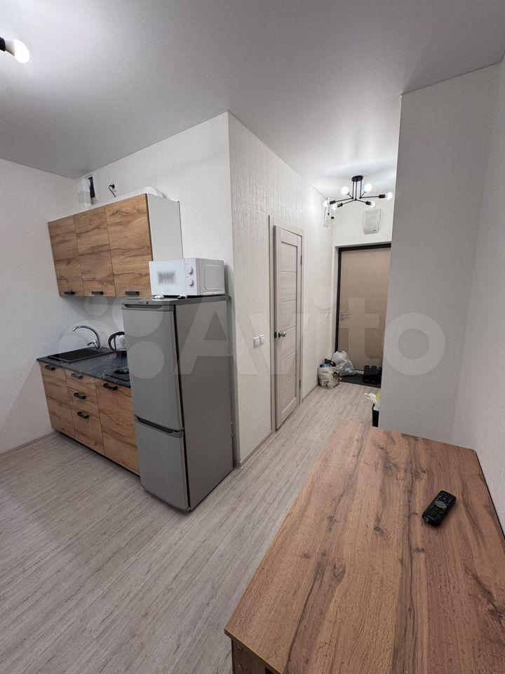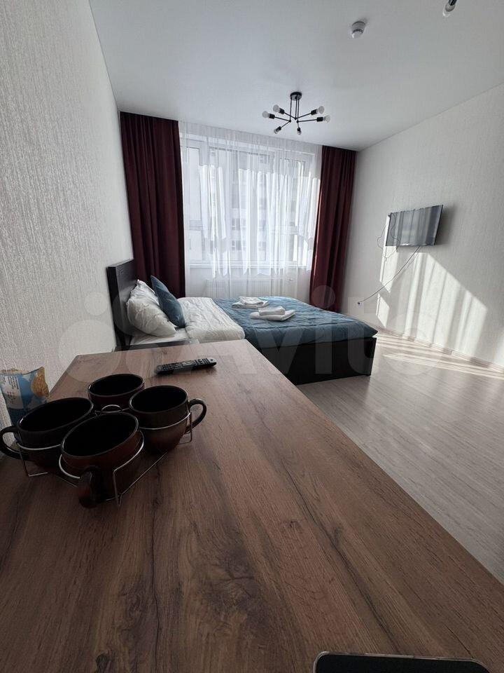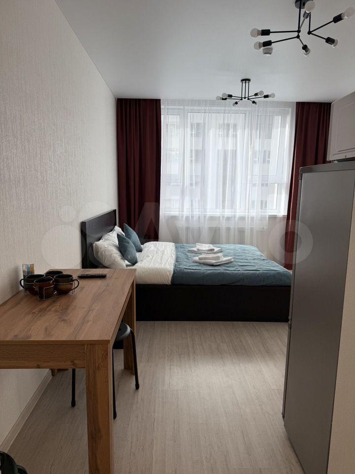 Сдаётся квартира-студия от собственника, полностью оборудована всем необходимым, готова для заселения! В квартире выполнен новый ремонт, никто не проживал. В зоне сна - большая двухспальная кровать 180200 см, большой новый телевизор, есть шкаф для хранения одежды. В зоне кухни - оборудованная новой техникой зона готовки, холодильник, вытяжка, духовка и плита, в квартире есть посуда, постель и проч. необходимые вещи.