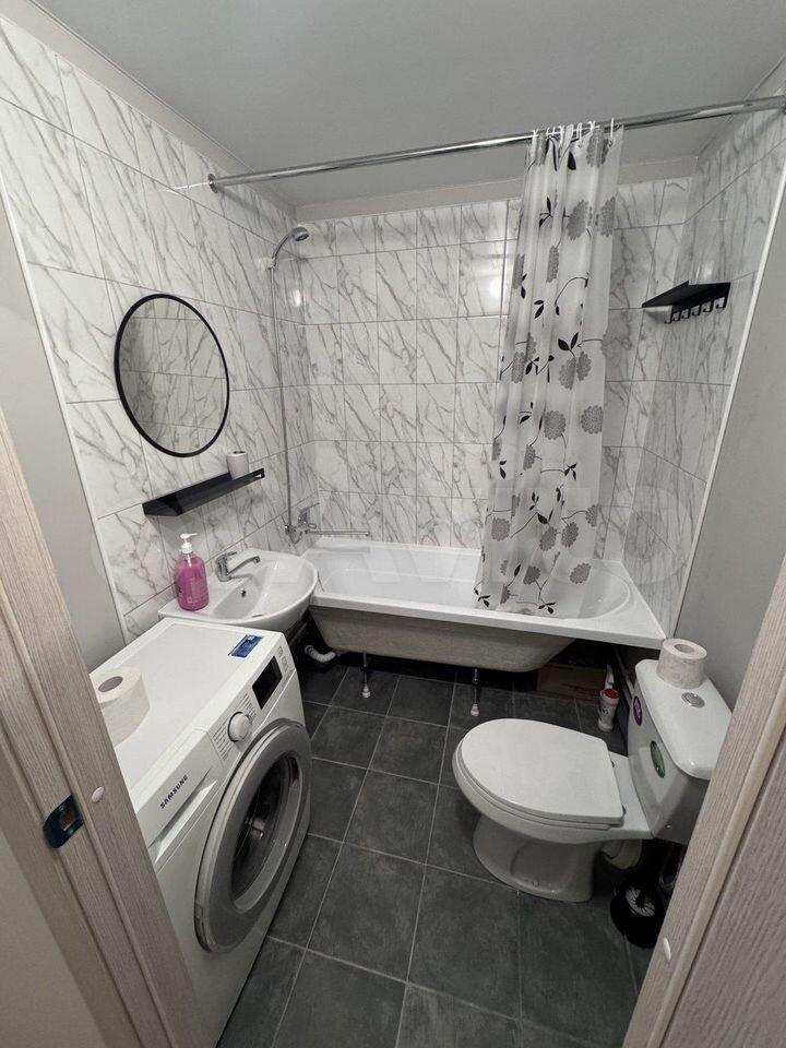 Просторная квартира-студия, в центре города, рядом метро 9мин, кафе, рестораны, аптеки, кинотеатр, ТЦ Мегаполис, любой транспорт и др инфраструктура. Оснащена техникой: посудомоечная машина, раковина из нержавеющей стали, гибкий кран, микроволновка, плита индукционная, двухкамерный холодильник, стиральная/сушильная машина 2 в 1. Сушилка, гладильная доска, чайник. В с/у сделан теплый пол.