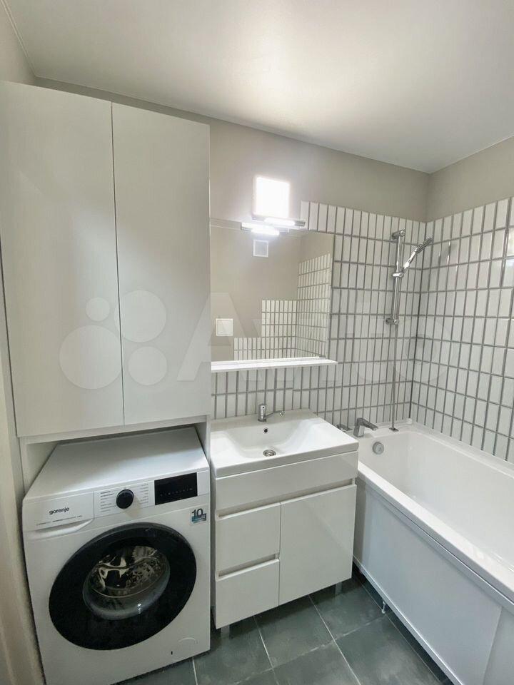 • ванной стиральная машина, зеркало, штора, ванна с экраном, унитаз, раковина, лампа;