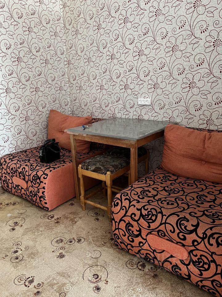 Комната на 8-м этаже, есть вся необходимая мебель (раскладной диван, детский раскладной диван, шкаф для одежды, стол, стулья).