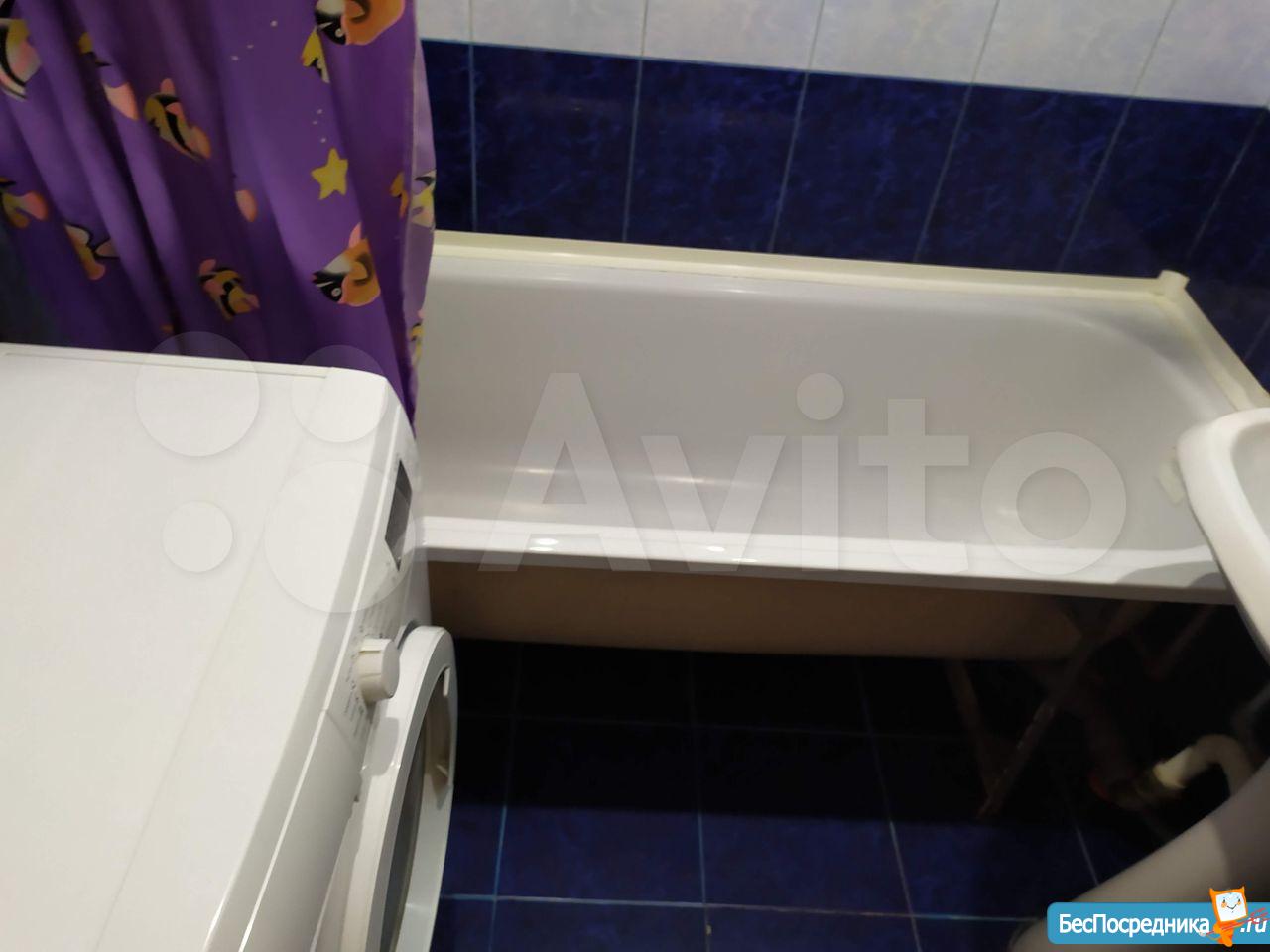 - В ванной комнате установлена стиральная машина.