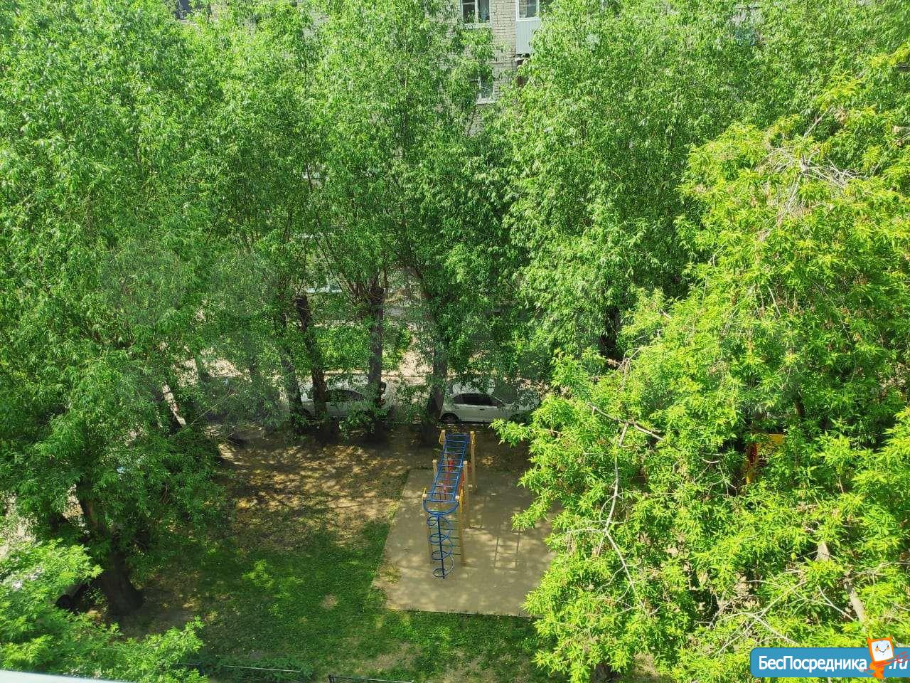 В квартире очень тихо, окна выходят в красивый зеленый двор.