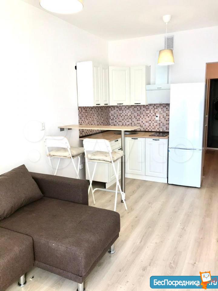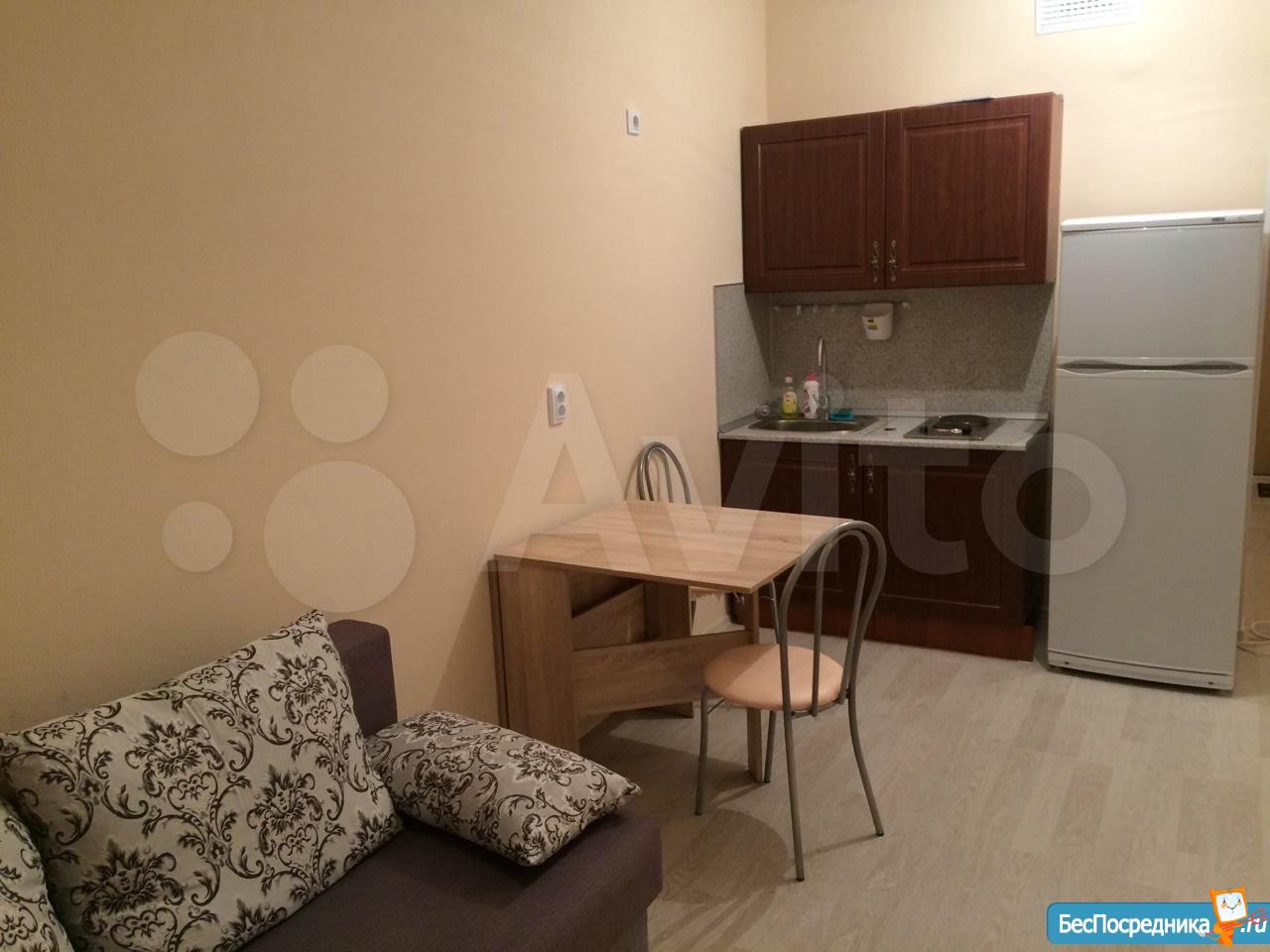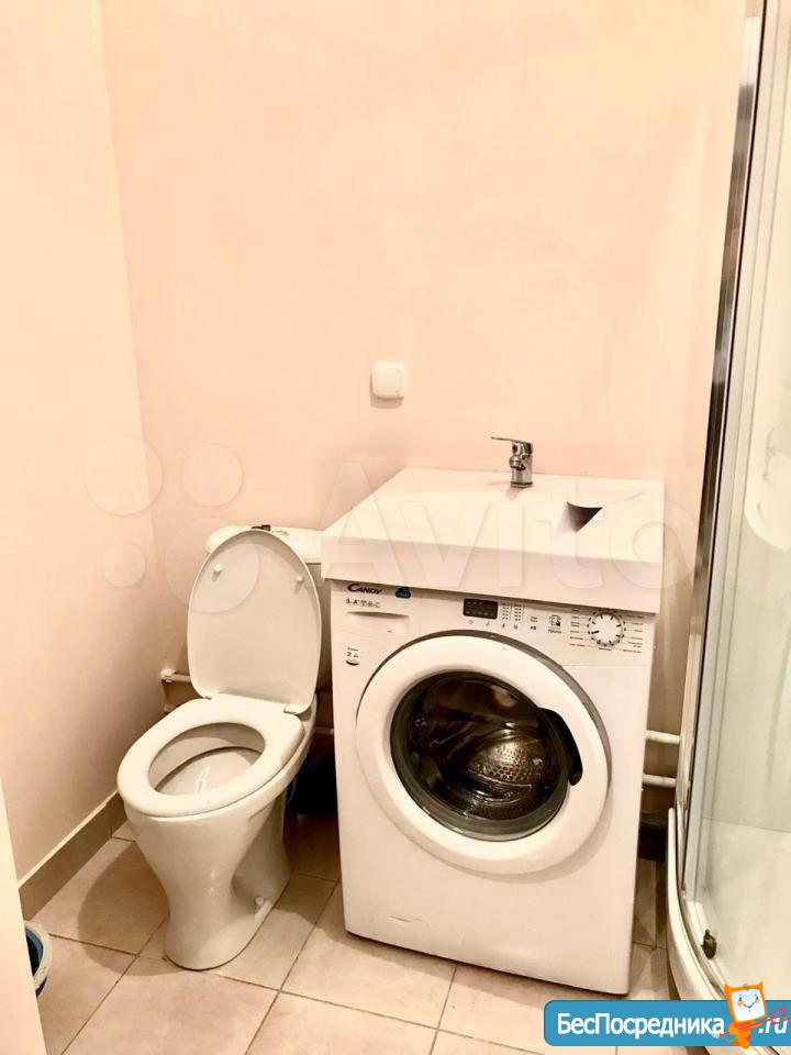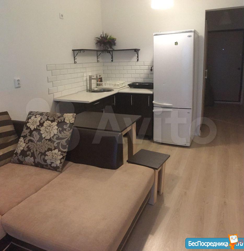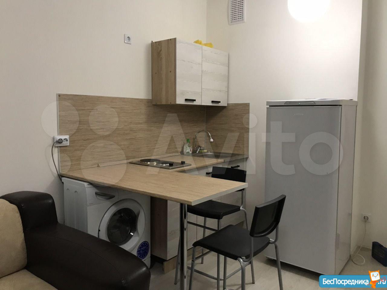 Собственник. Студия в новом доме. Есть холодильник, стиралка, чайник, посуда, микроволновка, телевизор. Заезжай и живи! К/у отдельно.