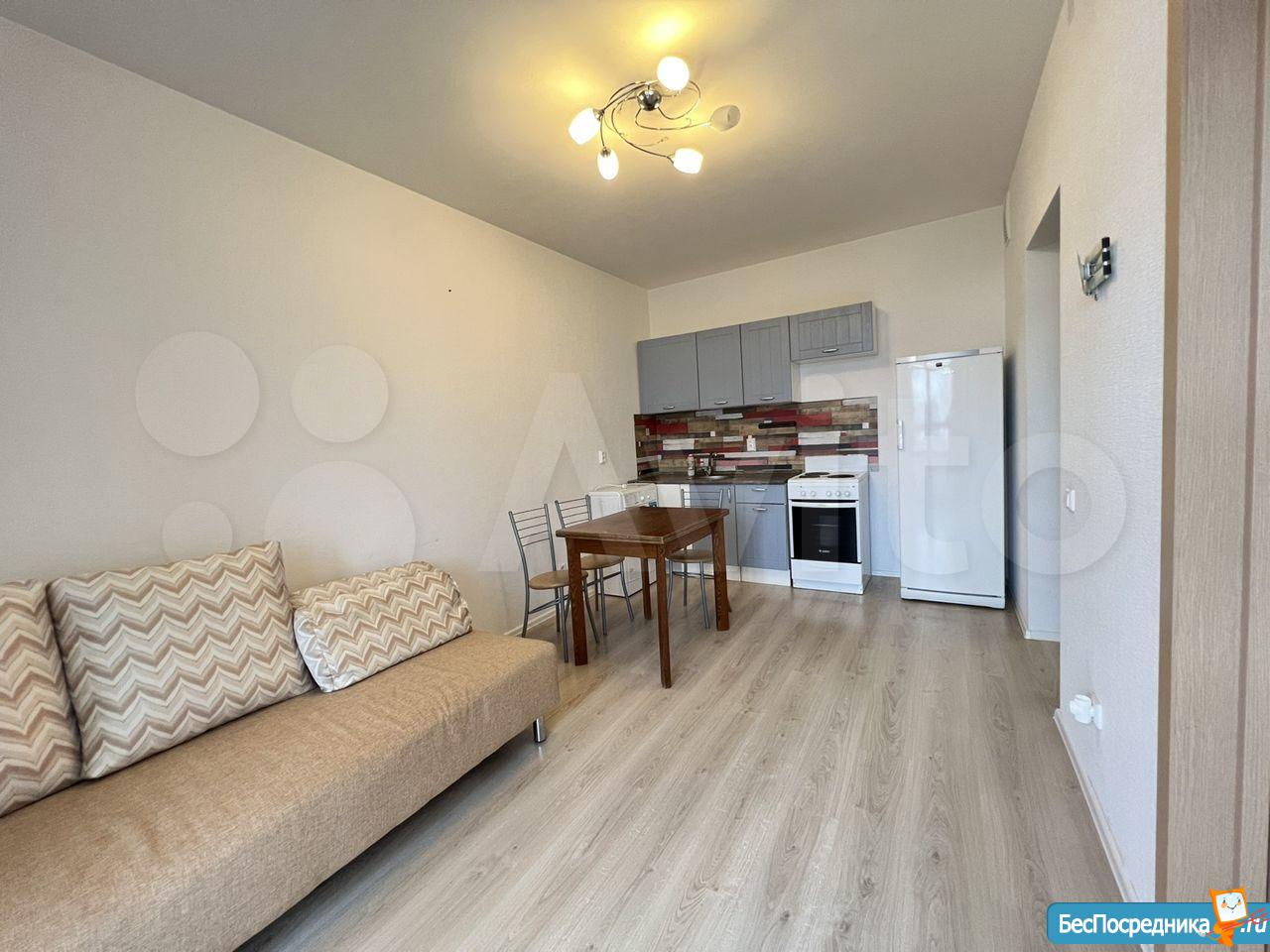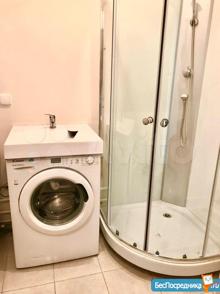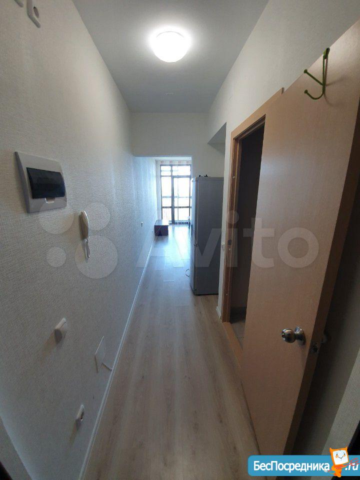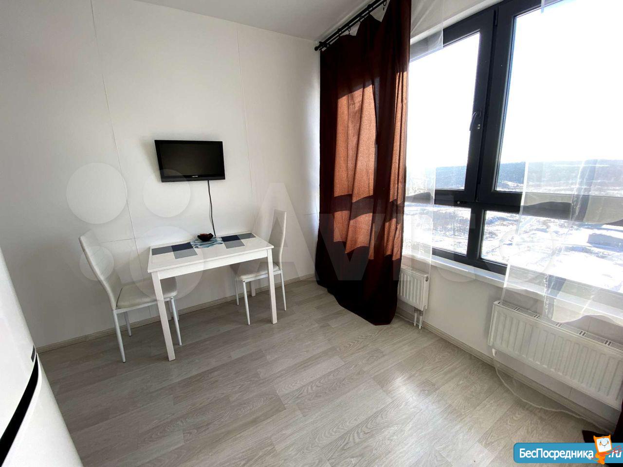 Собственник. Студия в новом доме. Есть холодильник, стиралка, чайник, посуда, микроволновка, телевизор. Заезжай и живи! К/у отдельно.