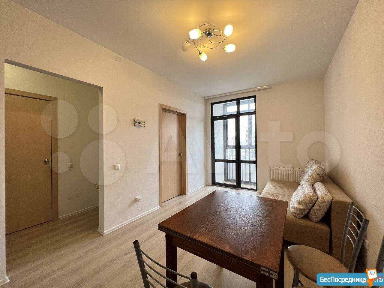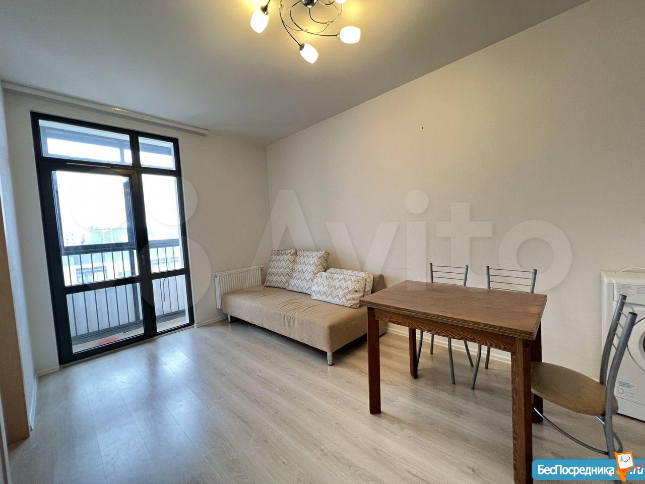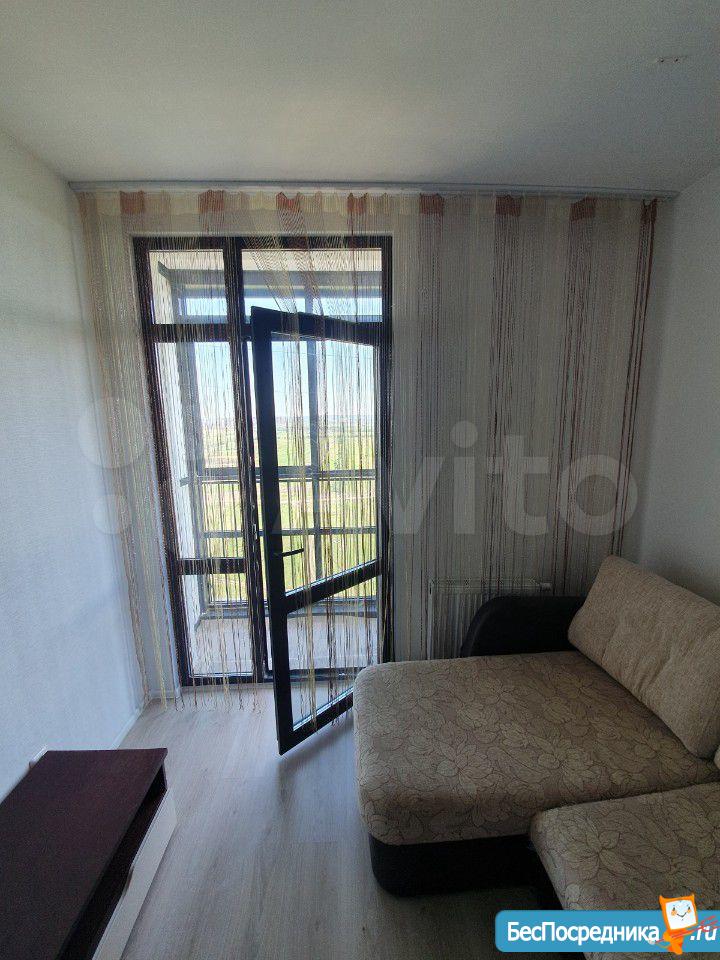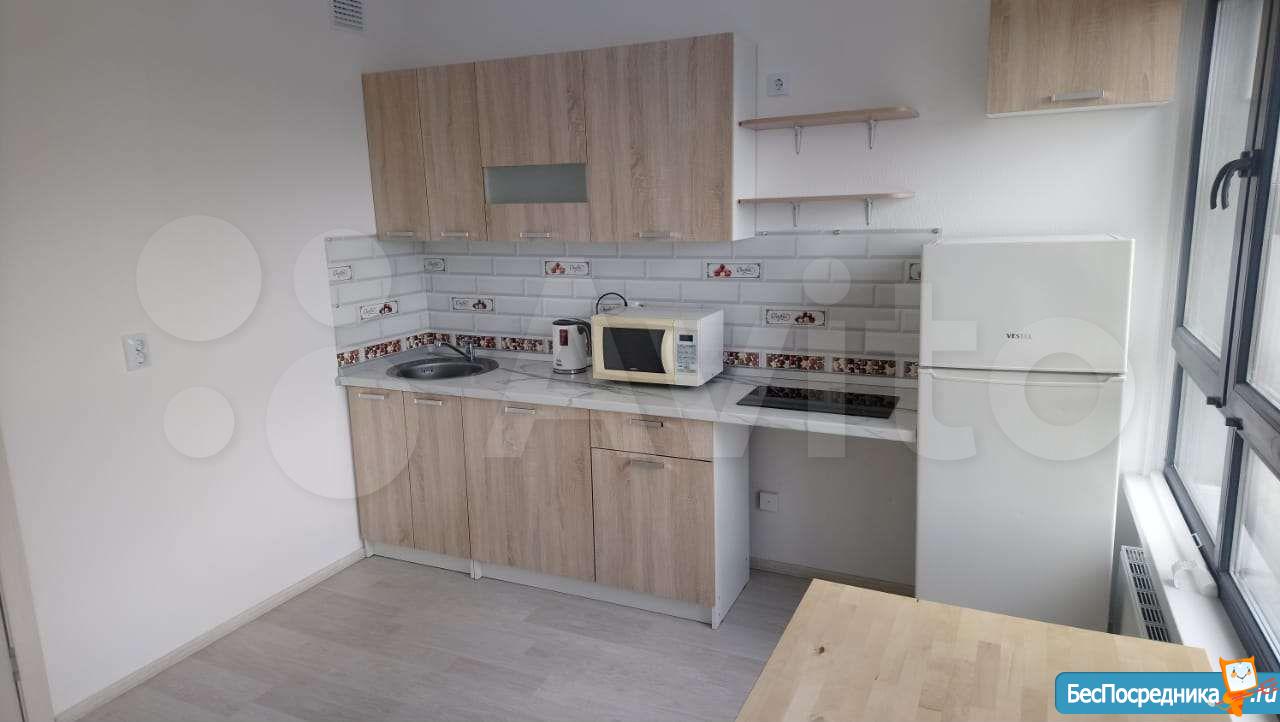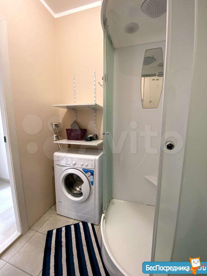 Собственник. Студия в новом доме. Есть холодильник, стиралка, чайник, посуда, микроволновка, телевизор. Заезжай и живи! К/у отдельно.
