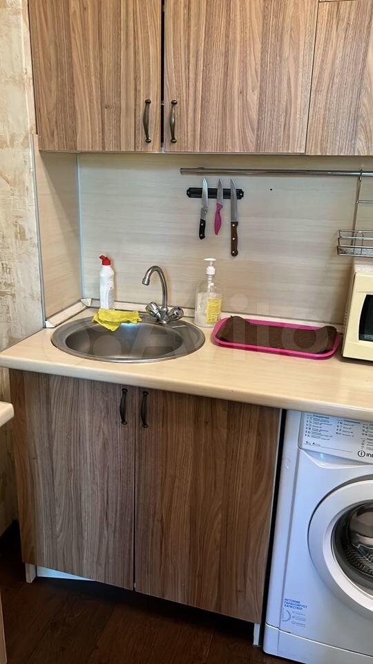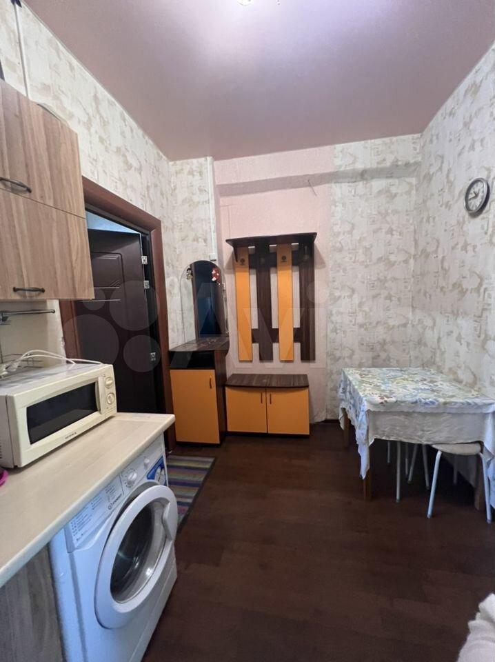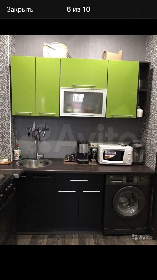 В комнате имеется стиральная машина , кухонный гарнитур , электро печь , холодильник , чайник , микроволновка , кухонные приборы , диван , стулья , столик, большой шкаф , телевизор, гладильная доска . (Имеется ещё один стол в комнате , на фото он не представлен , если не понадобится , то я его вывезу)